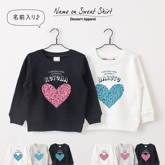 キッズ トレーナー 名入れ ハート04 レオパード柄 ヒョウ柄 スウェット 100 110 120 130 140 150 子ども おしゃれ かわいい 人気 名前入り ネーム バースデー 男女 ギフト 誕生日 プレゼント おそろ 兄弟 姉妹 親子コーデ 双子 記念撮影 幼稚園 保育園 小学校 スポーツ