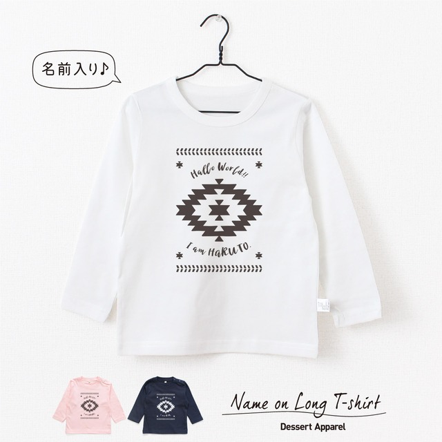 【長袖Tシャツ】名入れ キッズ ベビー ネイティブ柄01 キャンプ ロンティー 80 90 100 110 130 140 150 名前入り 出産祝い ギフト 誕生日 プレゼント 男の子 女の子 バースデー ネーム おしゃれ かわいい おそろい 兄弟 姉妹 親子コーデ 双子 運動会 記念撮影 幼稚園 保育園