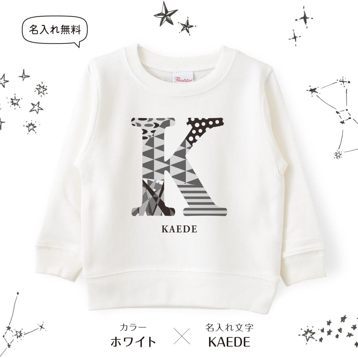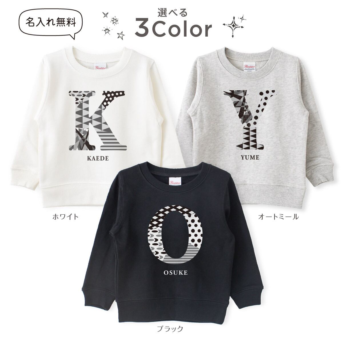キッズ トレーナー 名入れ イニシャル モノトーン スウェット 100 110 120 130 140 150 子供服 ジュニア 子ども おしゃれ かわいい 名前入り ネーム バースデー 男女 ギフト 誕生日 プレゼント おそろ 兄弟 姉妹 親子コーデ 双子 記念撮影 幼稚園 保育園 小学校 スポーツ | Dessert Apparel