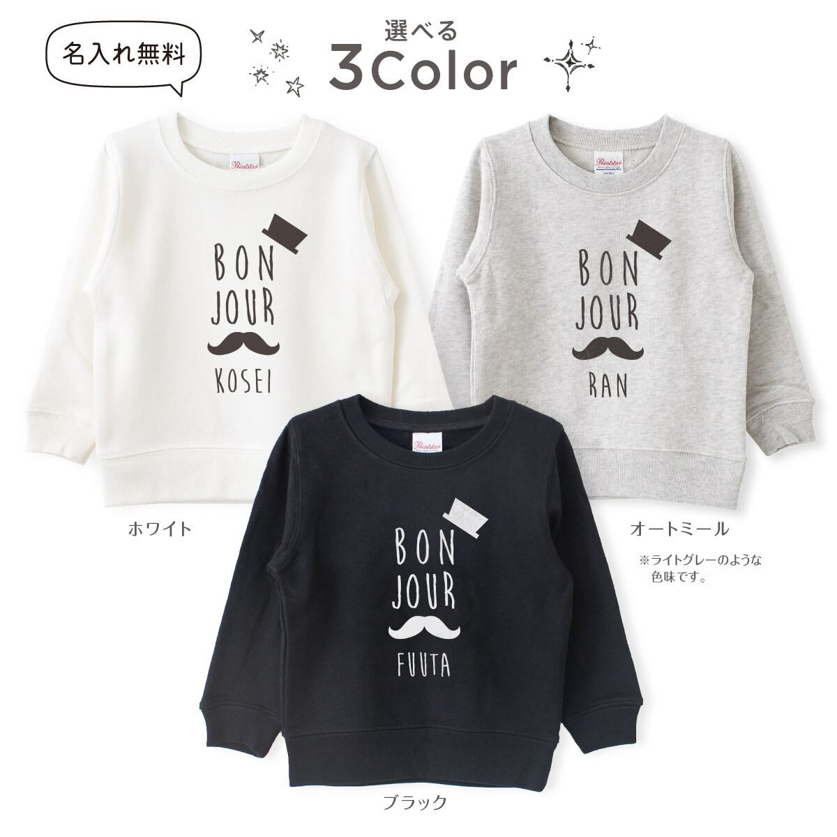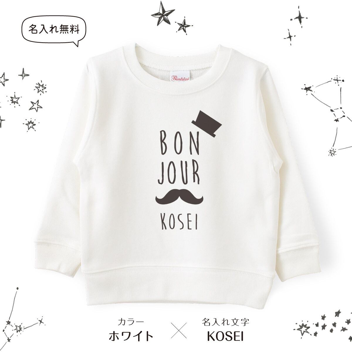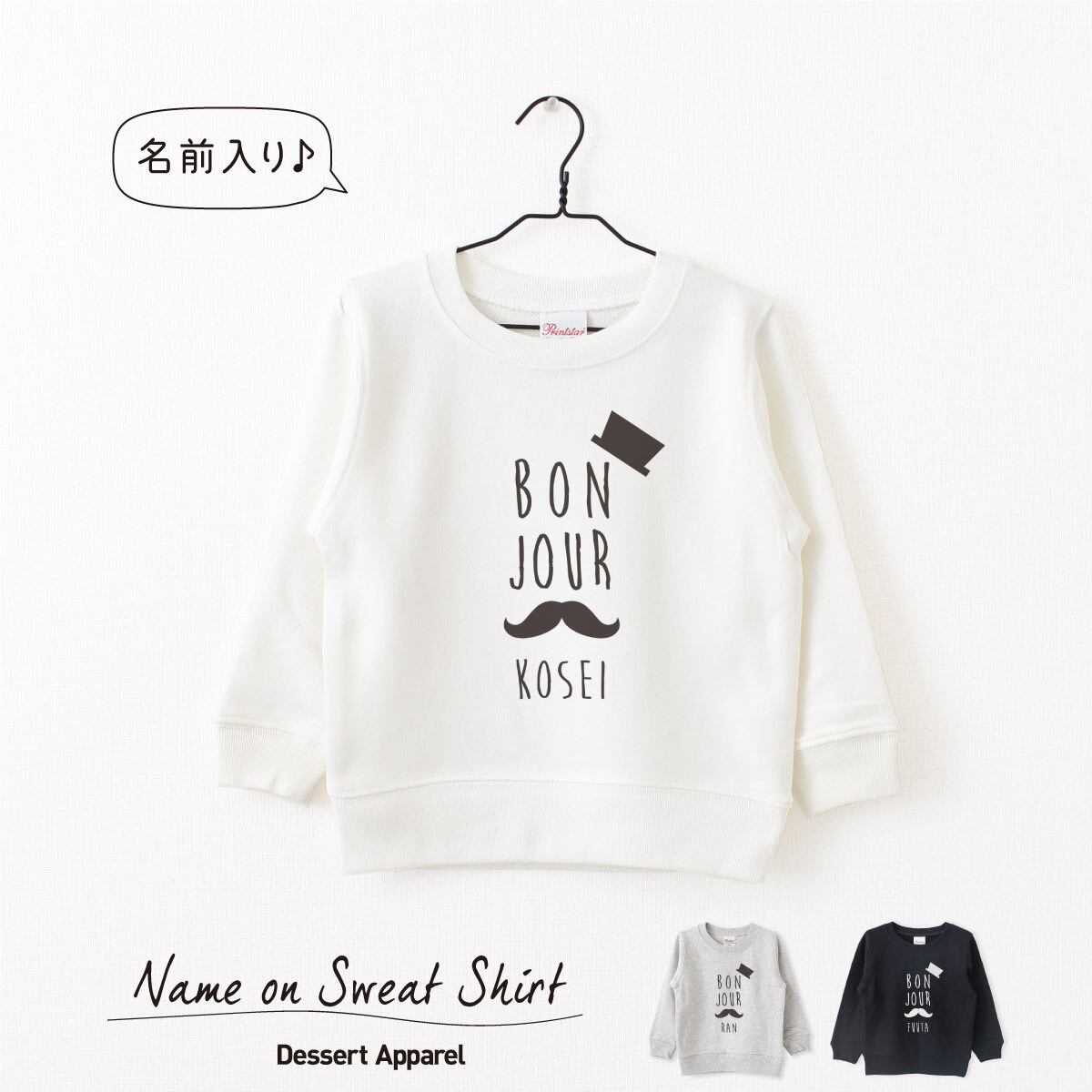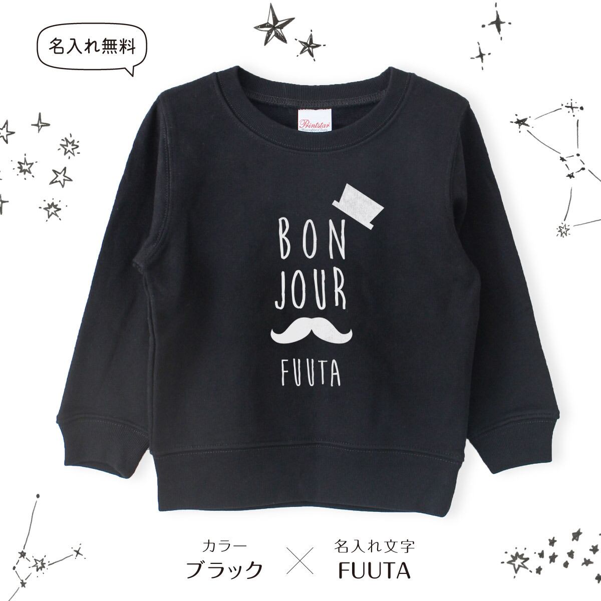 キッズ トレーナー 名入れ ヒゲ ハット スウェット 100 110 120 130 140 150 子供服 ジュニア 子ども おしゃれ かわいい 人気 名前入り ネーム バースデー 男女 ギフト 誕生日 プレゼント おそろ 兄弟 姉妹 親子コーデ 双子 記念撮影 幼稚園 保育園 小学校 スポーツ | Dessert Apparel
