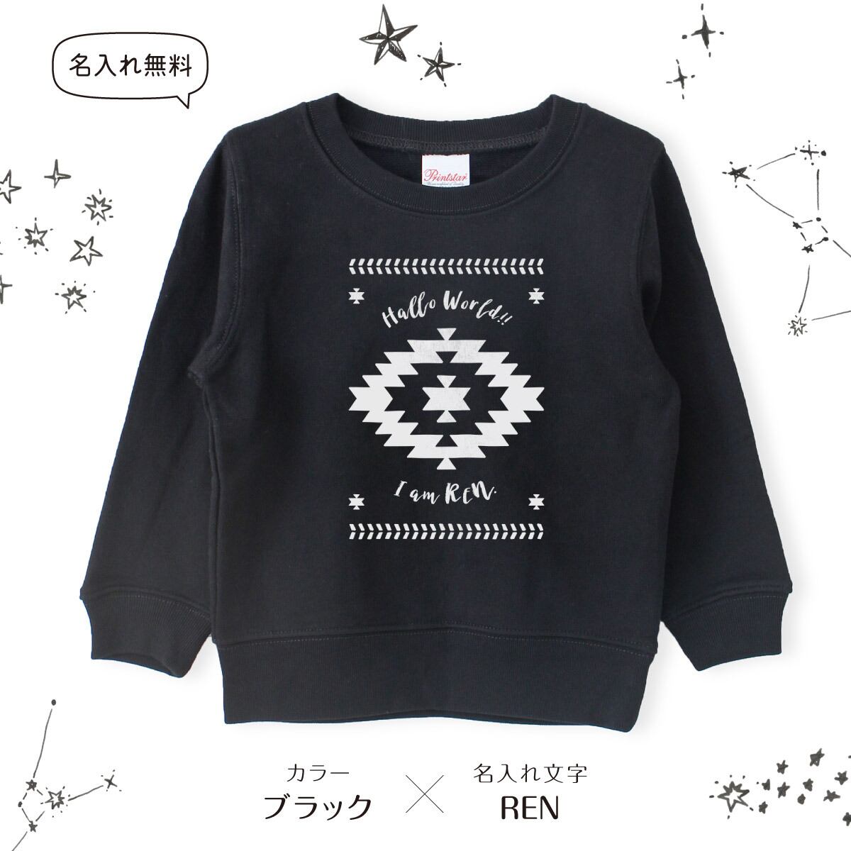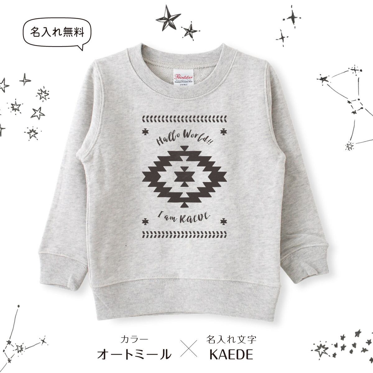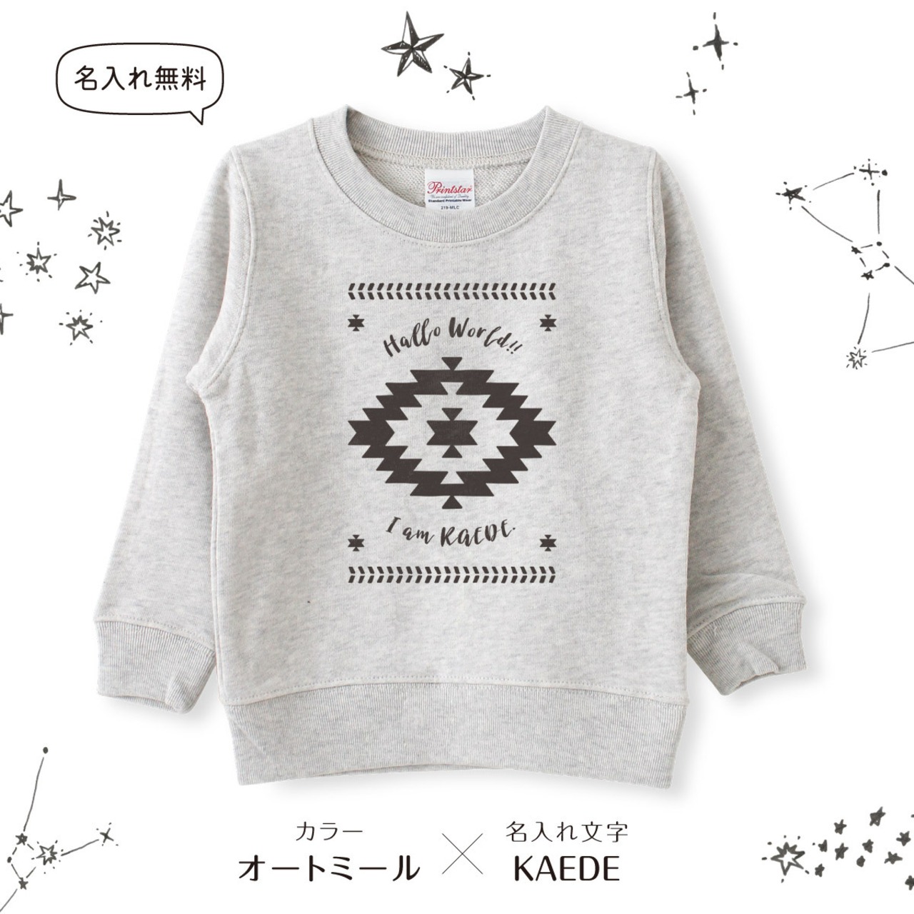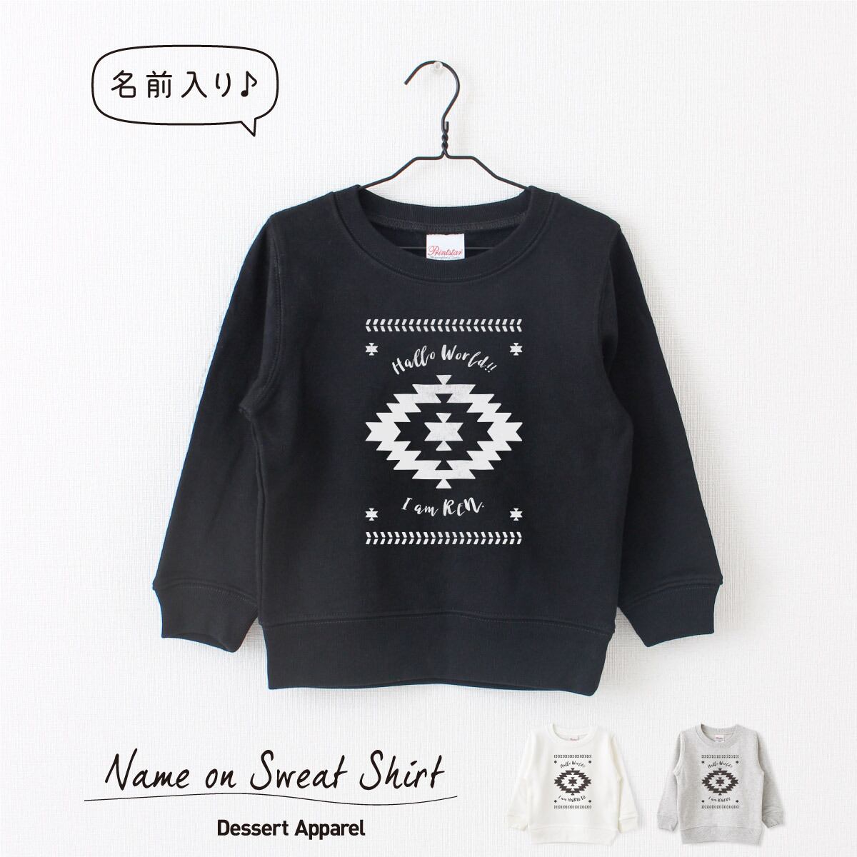 キッズ トレーナー 名入れ ネイティブ柄01 アメカジ スウェット 100 110 120 130 140 150 ジュニア 子ども おしゃれ かわいい 人気 名前入り ネーム バースデー 男女 ギフト 誕生日 プレゼント おそろ 兄弟 姉妹 親子コーデ 双子 記念撮影 幼稚園 保育園 小学校 スポーツ | Dessert Apparel