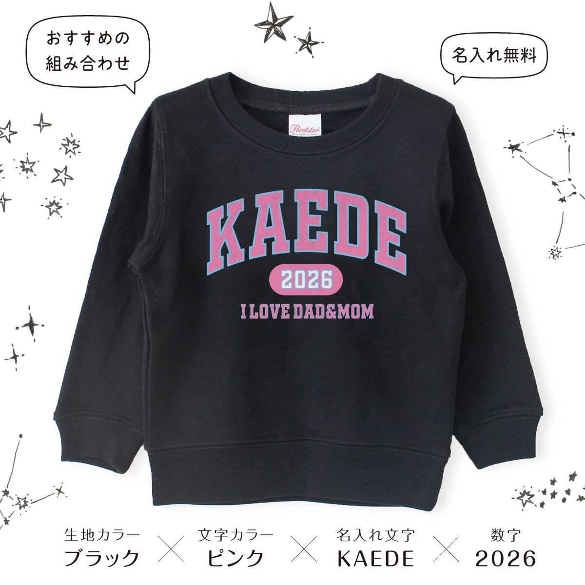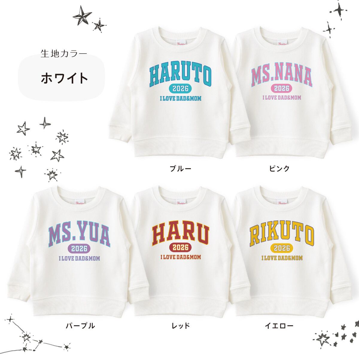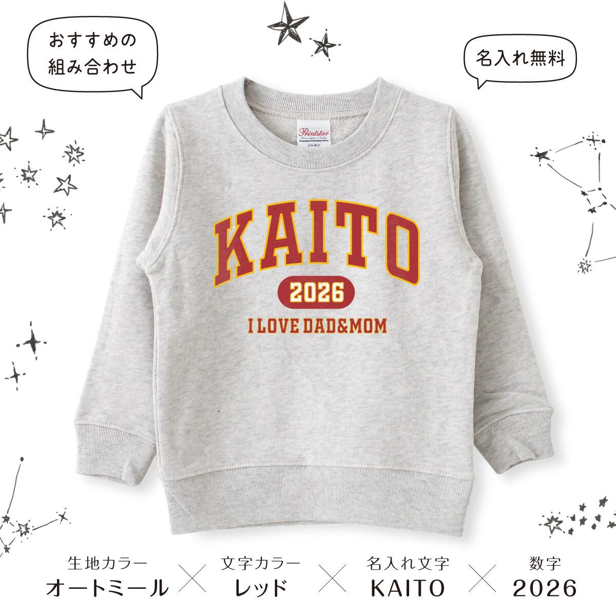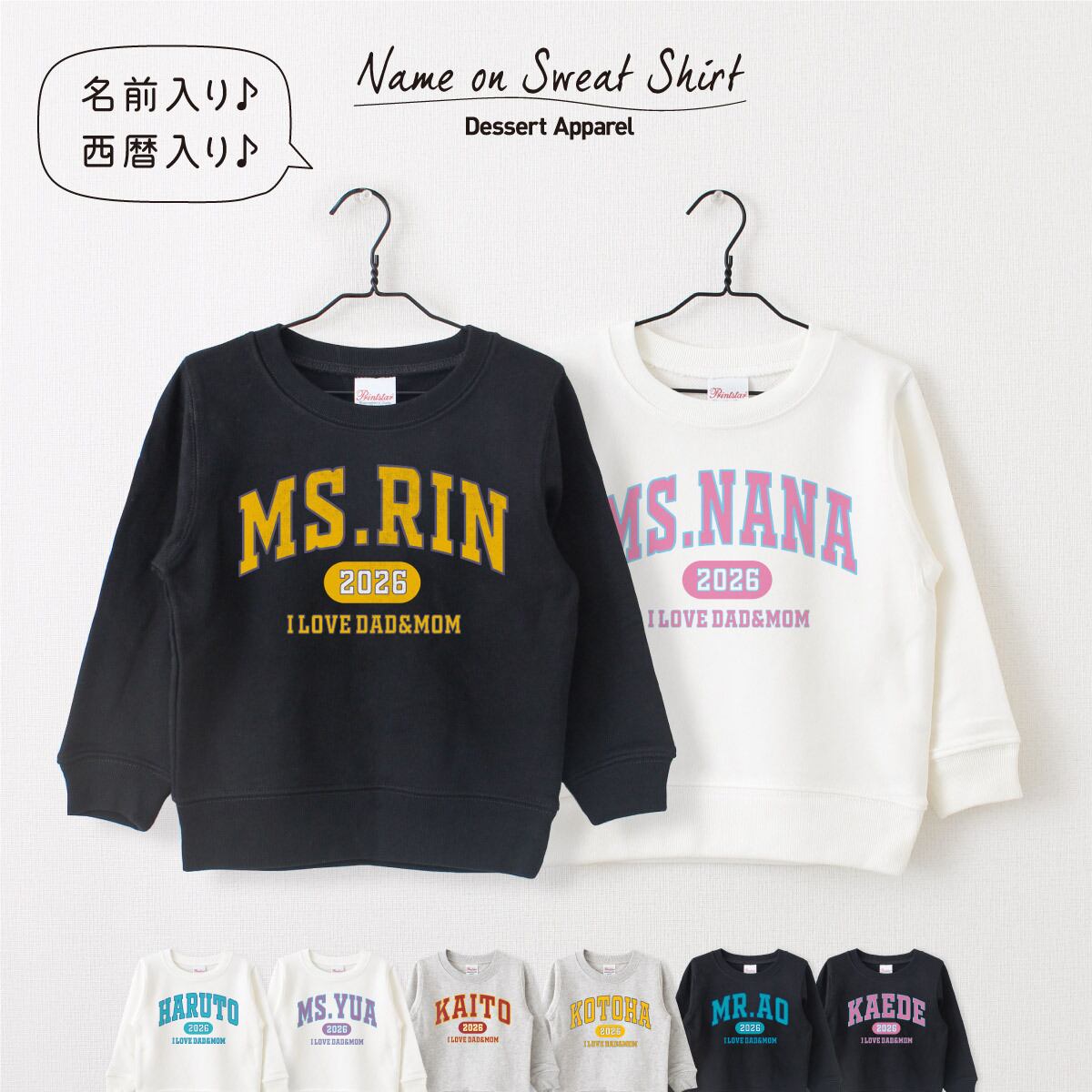キッズ トレーナー 名入れ カレッジロゴ01 アメカジ スウェット 100 110 120 130 140 150 子供服 ジュニア 子ども おしゃれ かわいい 名前入り ネーム バースデー 男女 ギフト 誕生日 プレゼント おそろ 兄弟 姉妹 親子コーデ 双子 記念撮影 幼稚園 保育園 小学校 スポーツ | Dessert Apparel