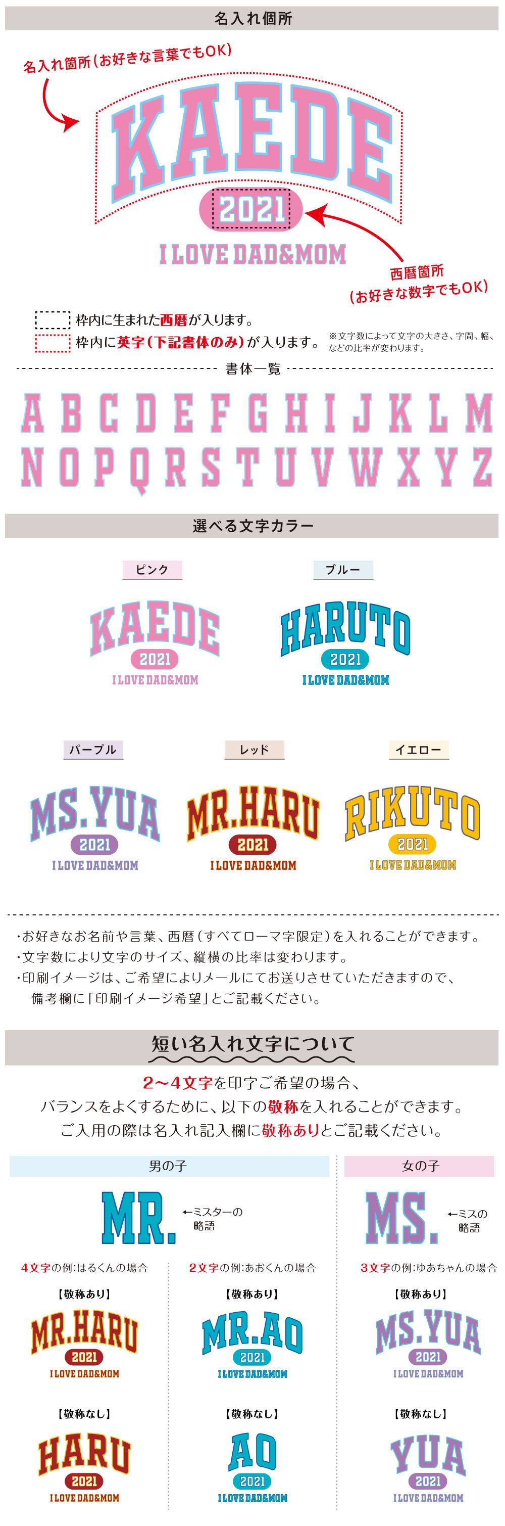 ・プリントする文字は商品画像「名入れ箇所」の「書体一覧」を必ずご確認ください。書体一覧に表示されている文字しか対応できませんので、予めご了承ください。