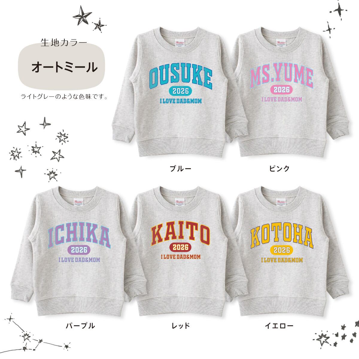 ベイビー キッズ 名前入れ 名入れ バースデー トレーナー スウェット 100cm 110cm 120cm 130cm 140cm 150cm 綿100% 赤ちゃん 赤ちゃん服 ベビー 子供服 イニシャル 子供服 ジュニア ベビー 子供 こども 子ども おそろい おしゃれ かわいい イニシャル 名前入り ネーム サイン 男の子 女の子 誕生日 ギフト プレゼント 出産祝い 長袖 バースデー お祝い 内祝い 兄弟 姉妹 お友達 パパ ママ boy girl baby kids ローマ字 英語 コットン ホワイト 白 黒 ブラック オートミール グレー カレッジ ロゴ アメカジ ペアルック 親子ペア 親子コーデ 親子リンク リンクコーデ ファミリー パパ ママ 記念撮影 バースデーフォト 運動会 幼稚園 保育園 小学校 クラブ チームトレーナー 家族写真 ハーフバースデーフォト キャンプ