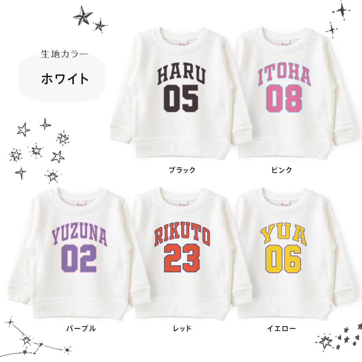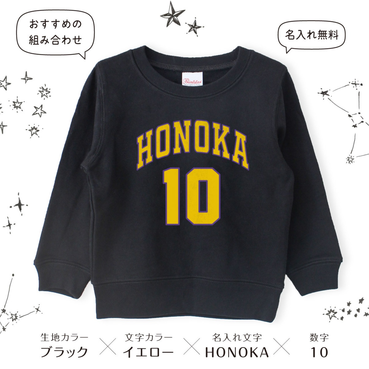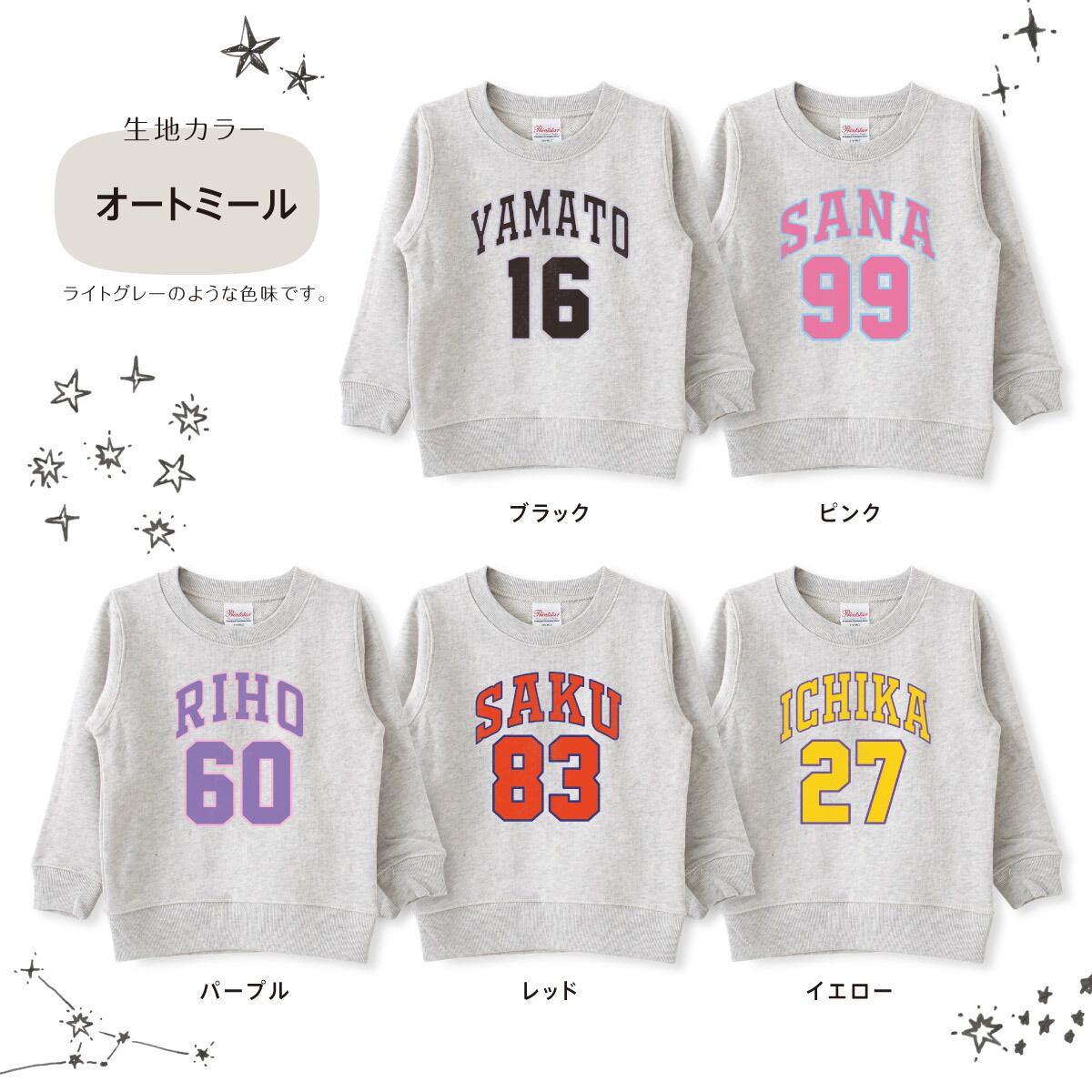 キッズ トレーナー 名入れ ユニフォーム01 カレッジロゴ アメカジ ナンバー スウェット 100 110 120 130 140 150 子供服 ジュニア 子ども おしゃれ かわいい 人気 名前入り ネーム バースデー おそろ 兄弟 姉妹 親子コーデ 双子 記念撮影 幼稚園 保育園 小学校 スポーツ | Dessert Apparel