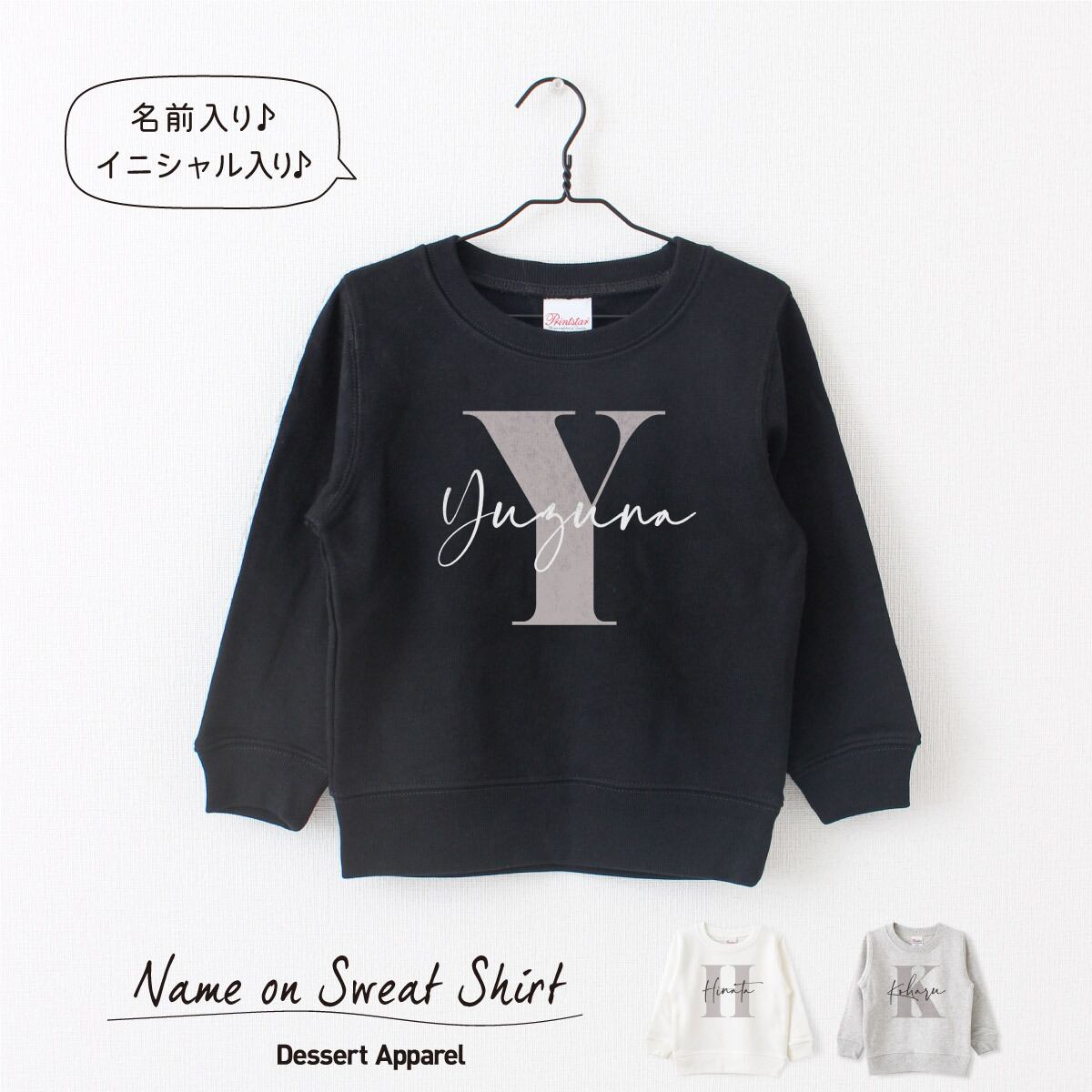 キッズ トレーナー 名入れ イニシャル04 モノトーン モード スウェット 100 110 120 130 140 150 子供服 ジュニア 子ども おしゃれ 名前入り ネーム バースデー 男女 ギフト 誕生日 プレゼント おそろ 兄弟 姉妹 親子コーデ 双子 記念撮影 幼稚園 保育園 小学校 スポーツ | Dessert Apparel