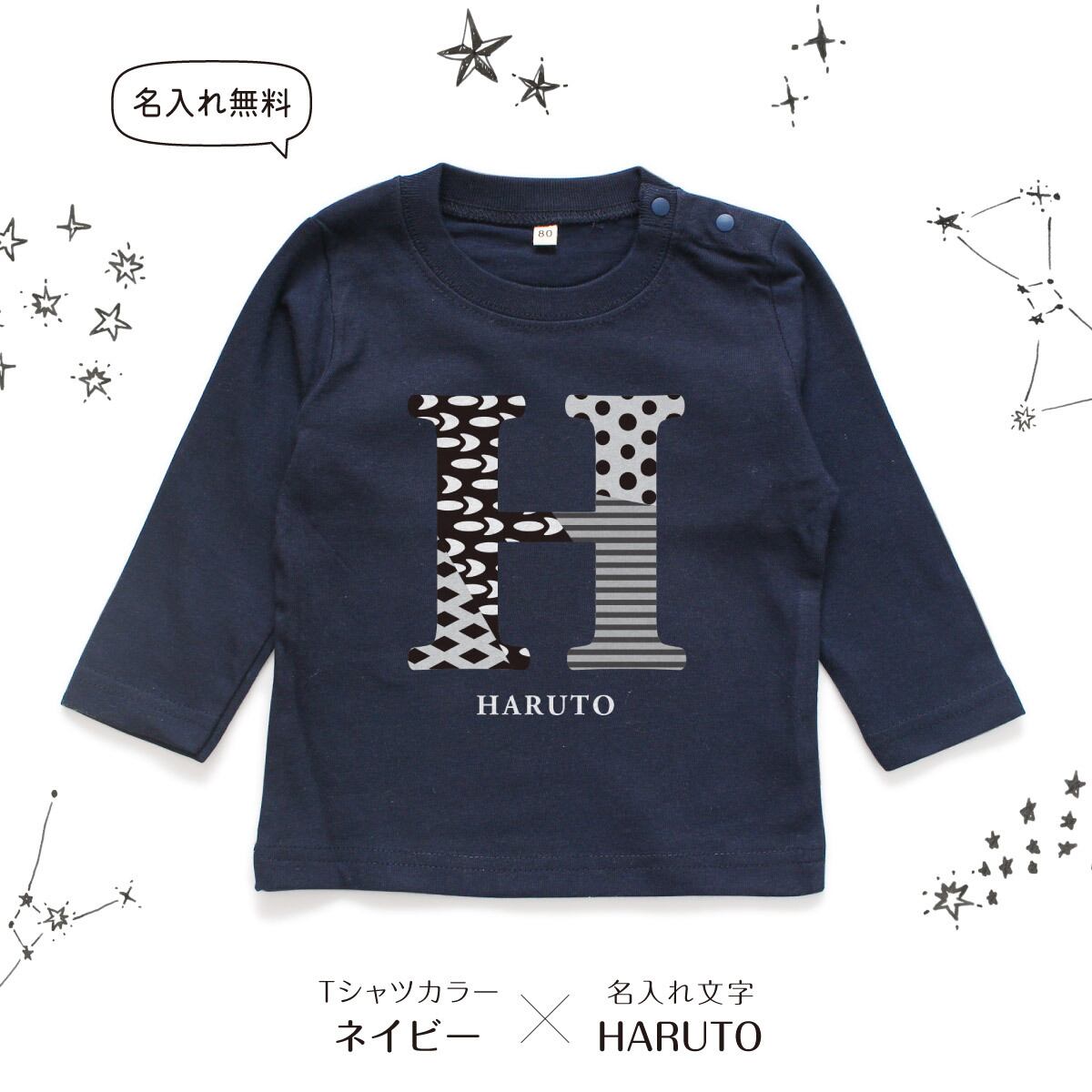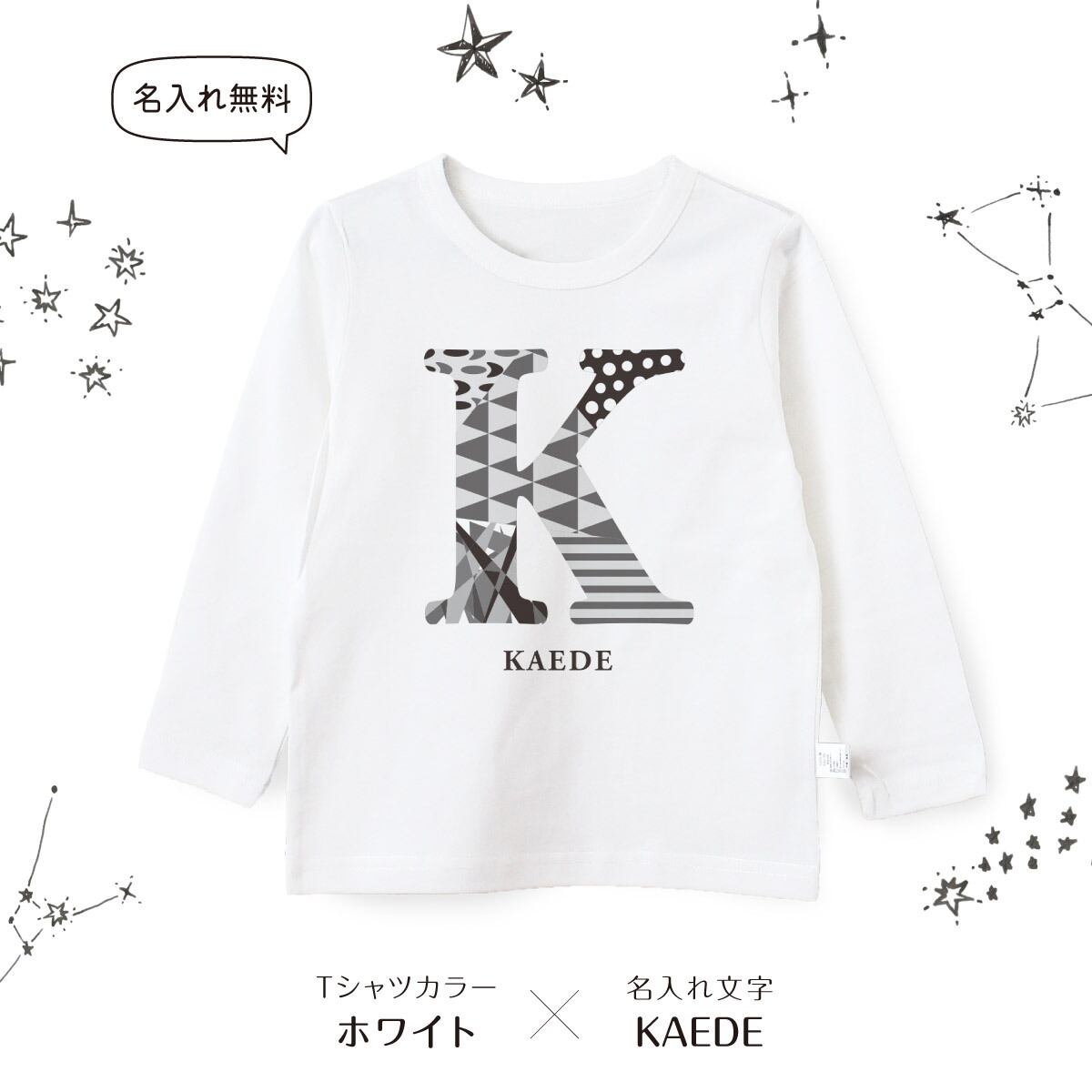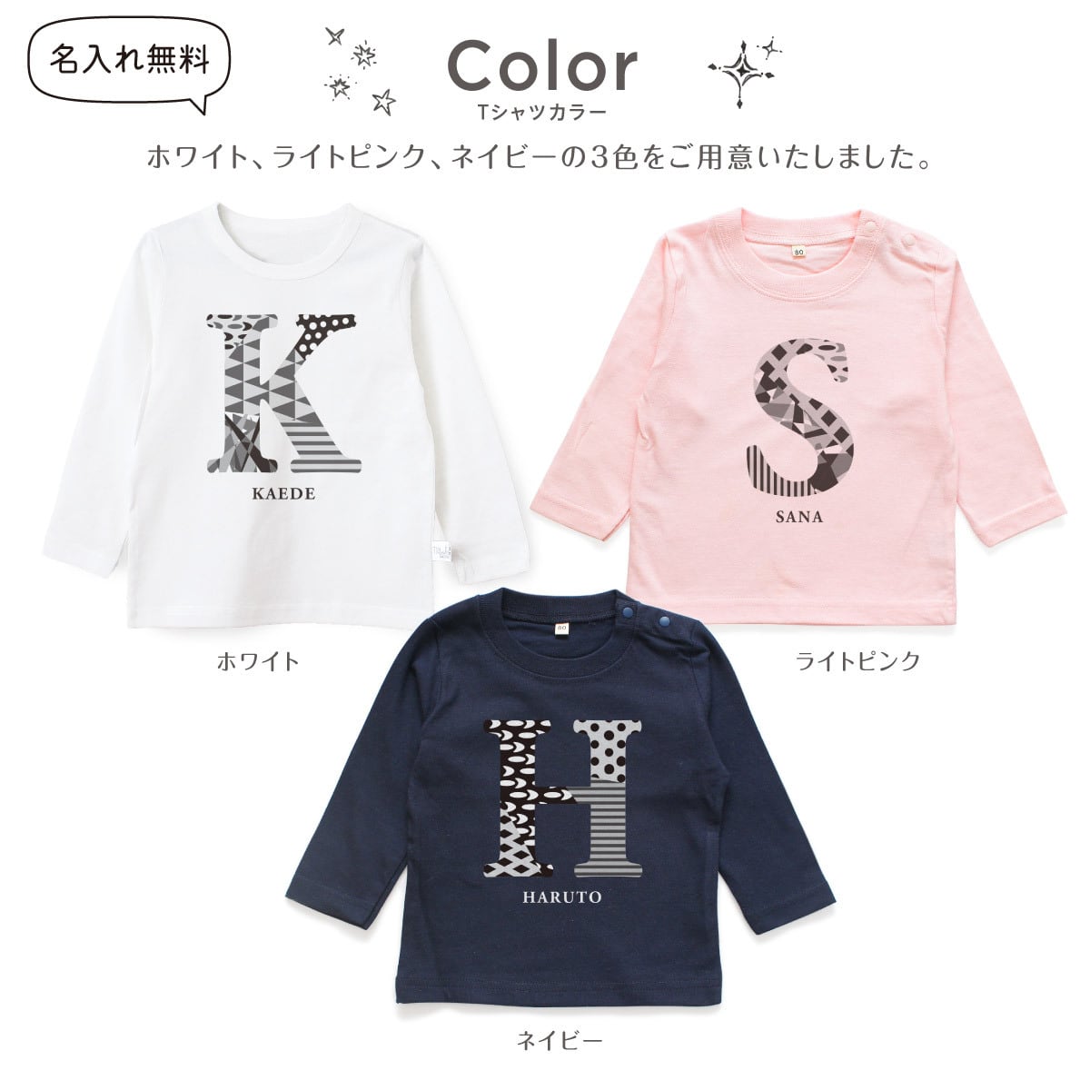 【長袖Tシャツ】名入れ キッズ ベビー イニシャル モノトーン ロンティー 80 90 100 110 130 140 150 名前入り 出産祝い ギフト 誕生日 プレゼント 男の子 女の子 バースデー ネーム おしゃれ かわいい 人気 おそろ 兄弟 姉妹 親子コーデ 双子 運動会 記念撮影 幼稚園 保育園 | Dessert Apparel