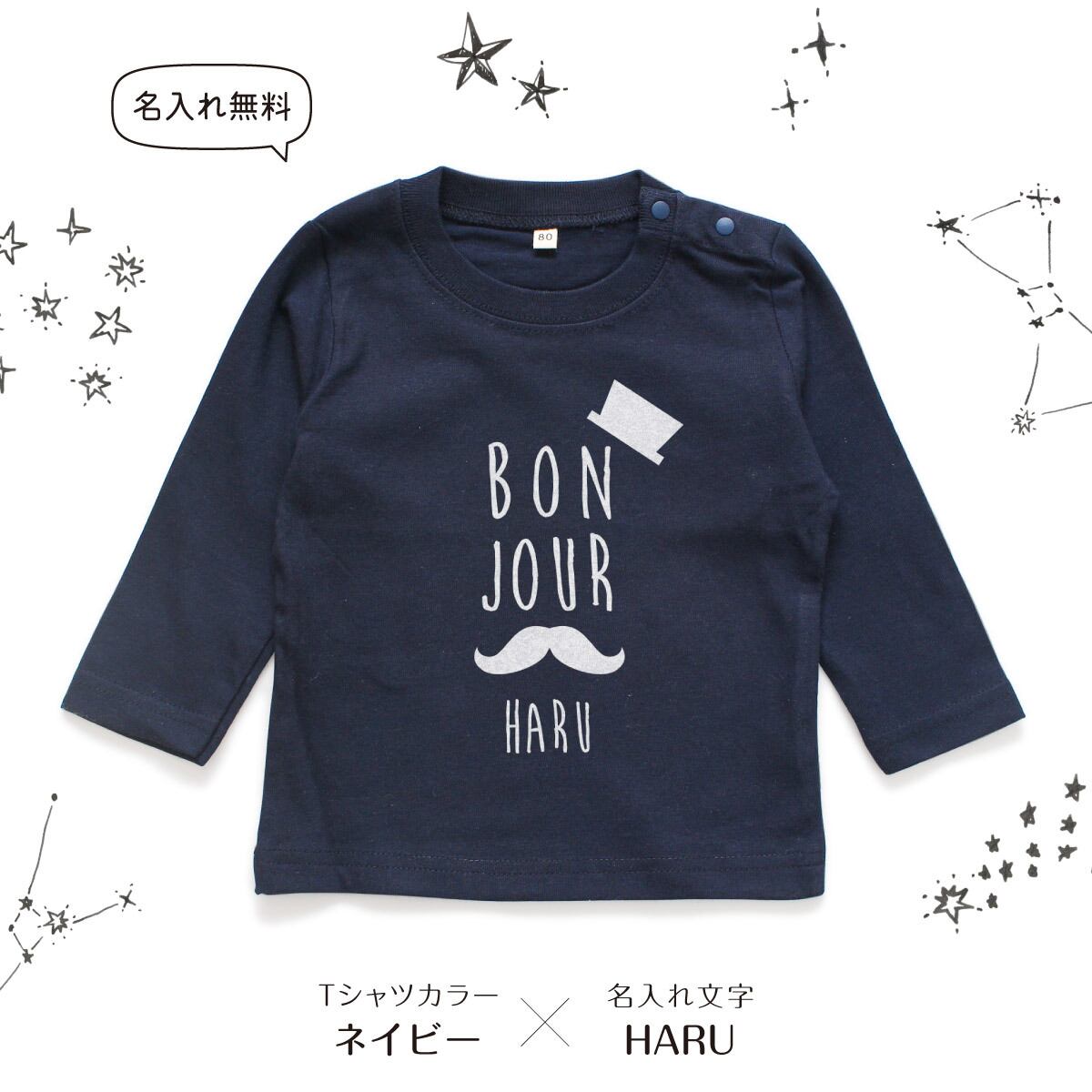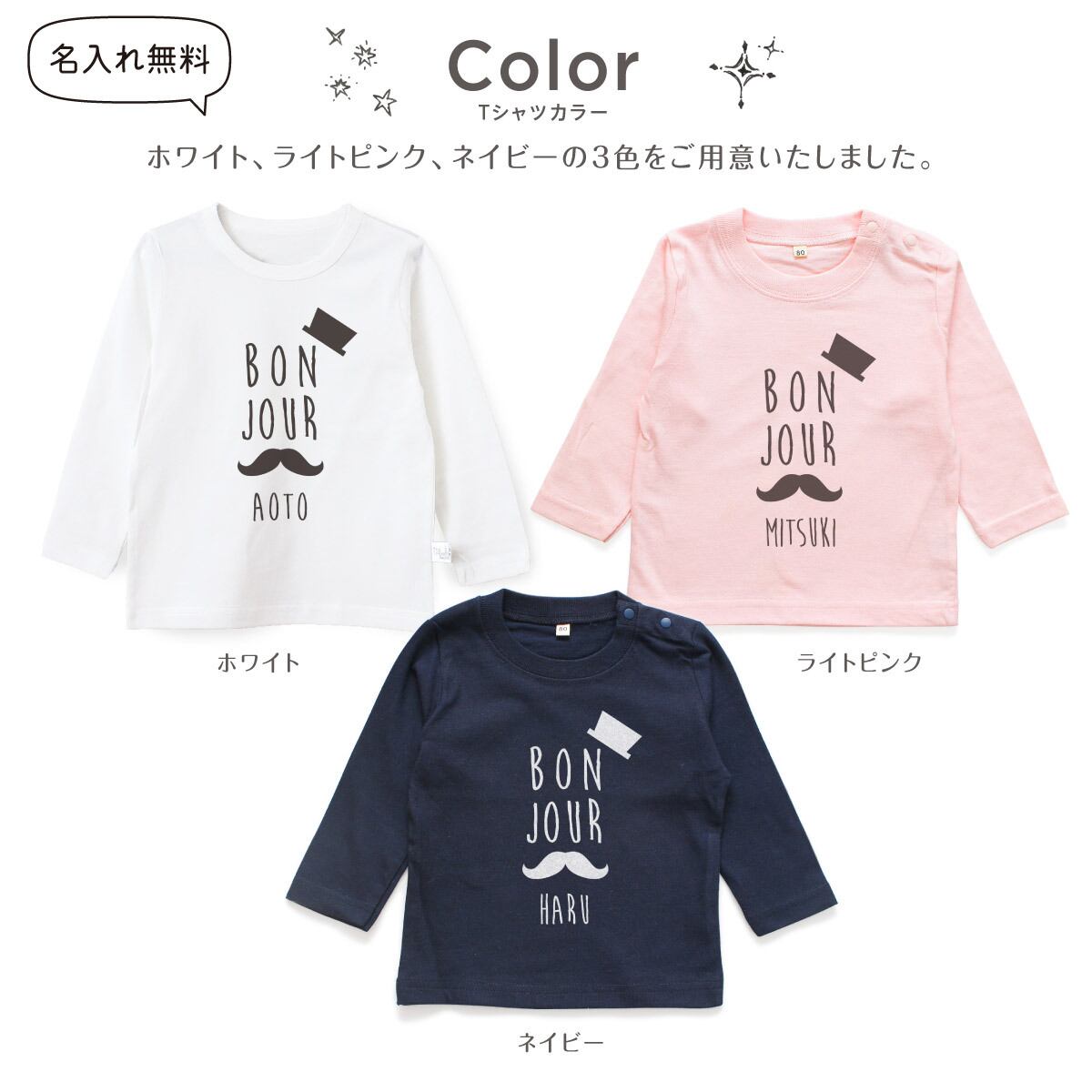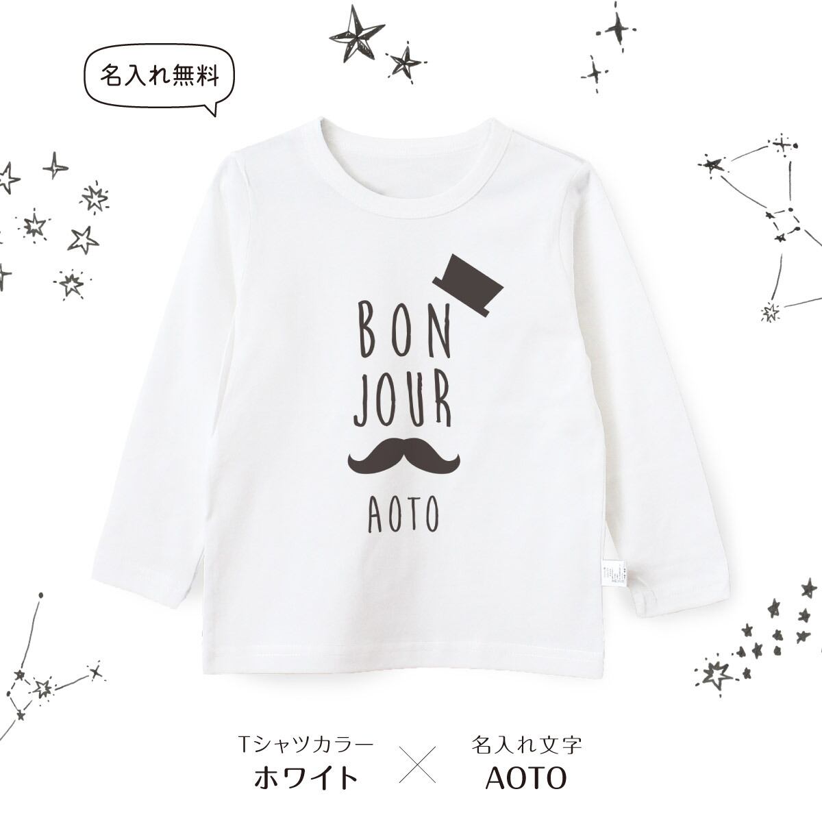 【長袖Tシャツ】名入れ キッズ ベビー ひげ ロンティー 80 90 100 110 130 140 150 名前入り 出産祝い ギフト 誕生日 プレゼント 男の子 女の子 バースデー ネーム おしゃれ かわいい 人気 おそろい 兄弟 姉妹 親子コーデ 双子 運動会 記念撮影 幼稚園 保育園 | Dessert Apparel