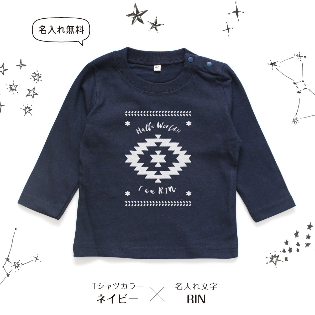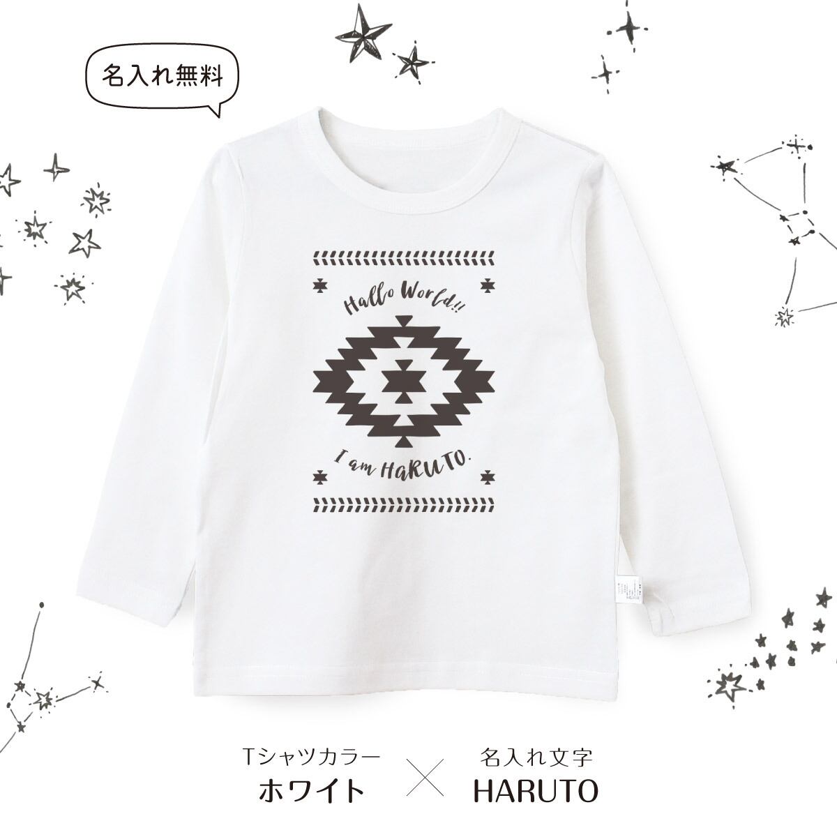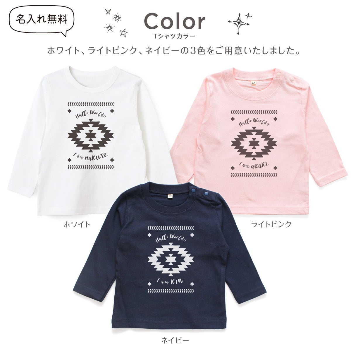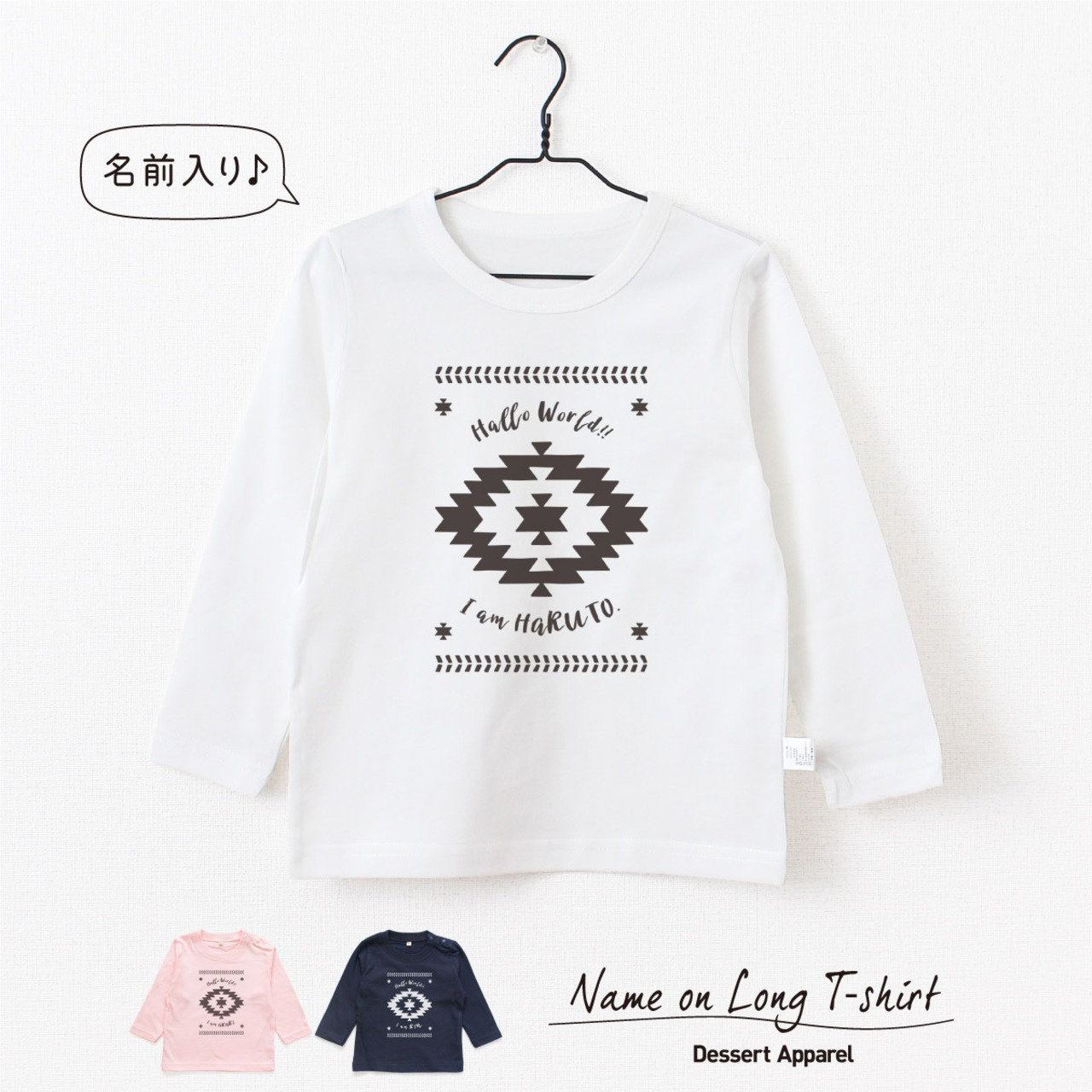 【長袖Tシャツ】名入れ キッズ ベビー ネイティブ柄01 キャンプ ロンティー 80 90 100 110 130 140 150 名前入り 出産祝い ギフト 誕生日 プレゼント 男の子 女の子 バースデー ネーム おしゃれ かわいい おそろい 兄弟 姉妹 親子コーデ 双子 運動会 記念撮影 幼稚園 保育園 | Dessert Apparel