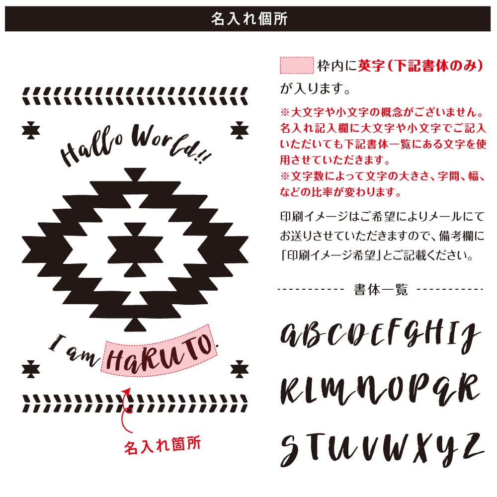 ・プリントする文字は商品画像「名入れ箇所」の「書体一覧」を必ずご確認ください。書体一覧に表示されている文字しか対応できませんので、予めご了承ください。