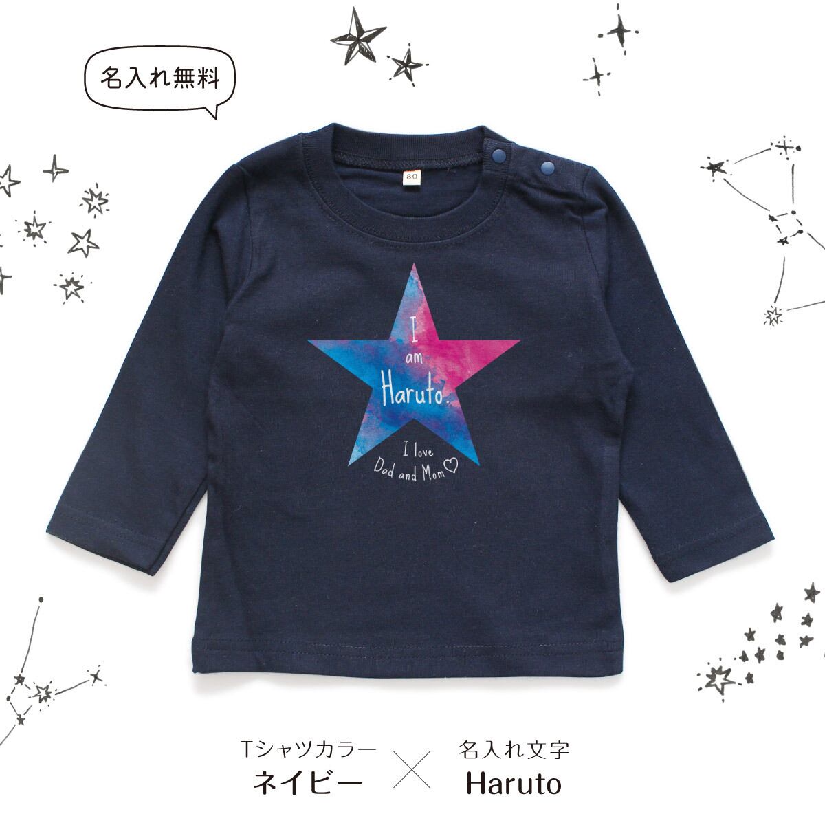 【長袖Tシャツ】名入れ キッズ ベビー 水彩画風ビッグスター02 80cm 90cm 110cm 130cm 名前入り 出産祝い ギフト 誕生日 プレゼント 男の子 女の子 バースデー 赤ちゃん服 子供服 イニシャル ネーム おしゃれ かわいい 人気 おそろい 兄弟 姉妹 メール便送料無料 | Dessert Apparel