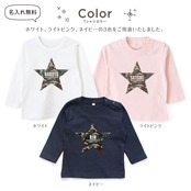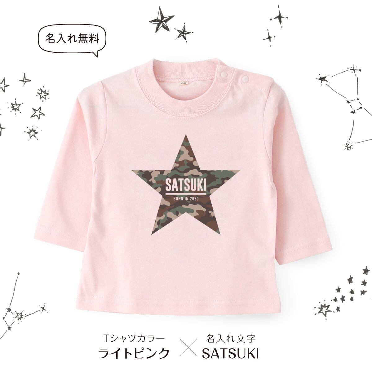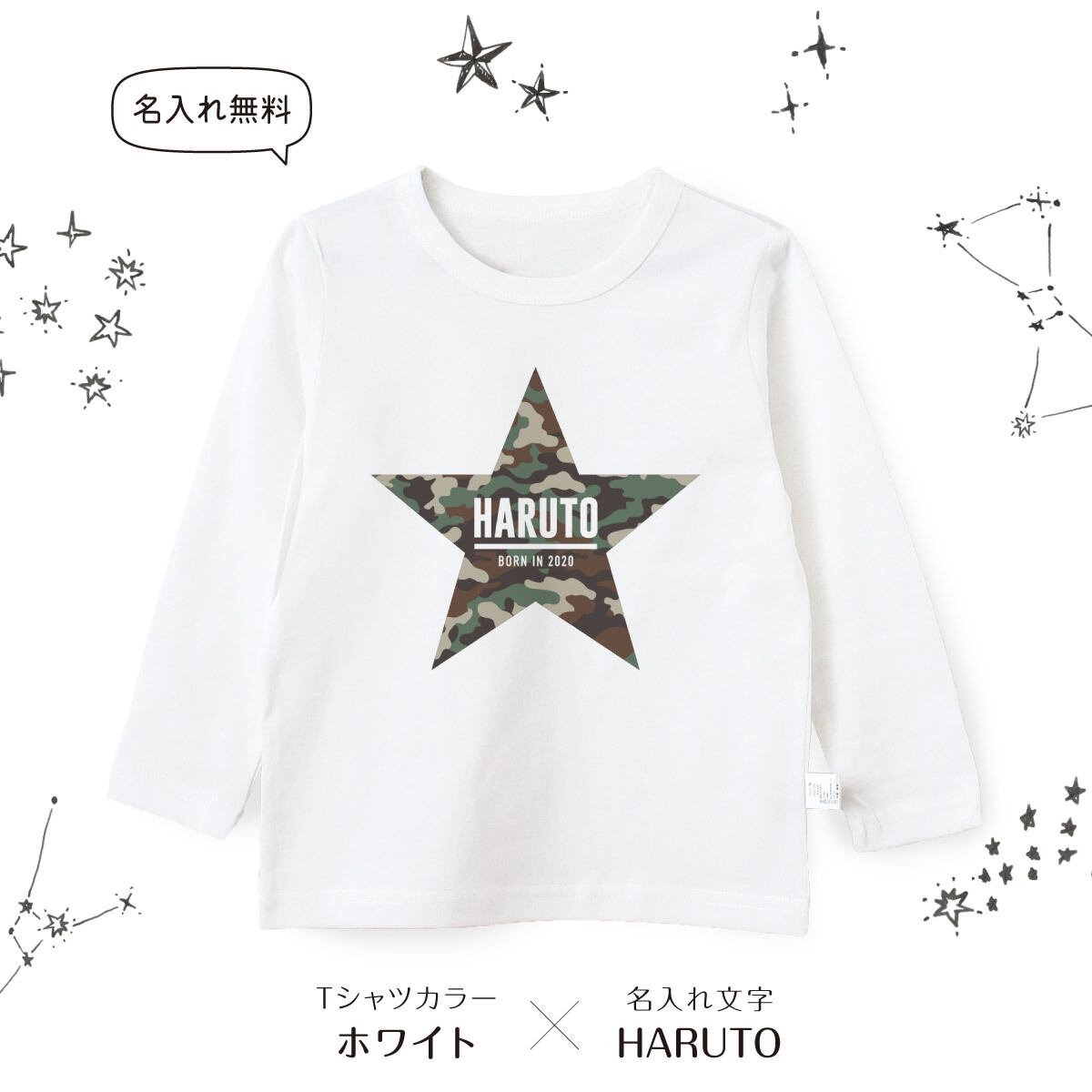 【長袖Tシャツ】名入れ キッズ ベビー 迷彩柄スター01 ロンティー 80 90 100 110 130 140 150 名前入り 出産祝い ギフト 誕生日 プレゼント 男の子 女の子 バースデー ネーム おしゃれ かわいい 人気 おそろい 兄弟 姉妹 親子コーデ 双子 運動会 記念撮影 幼稚園 保育園 | Dessert Apparel