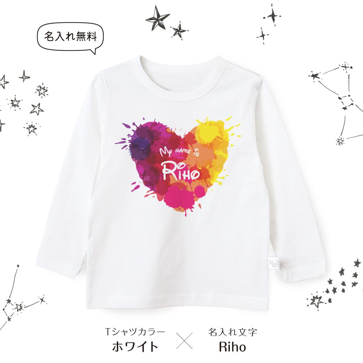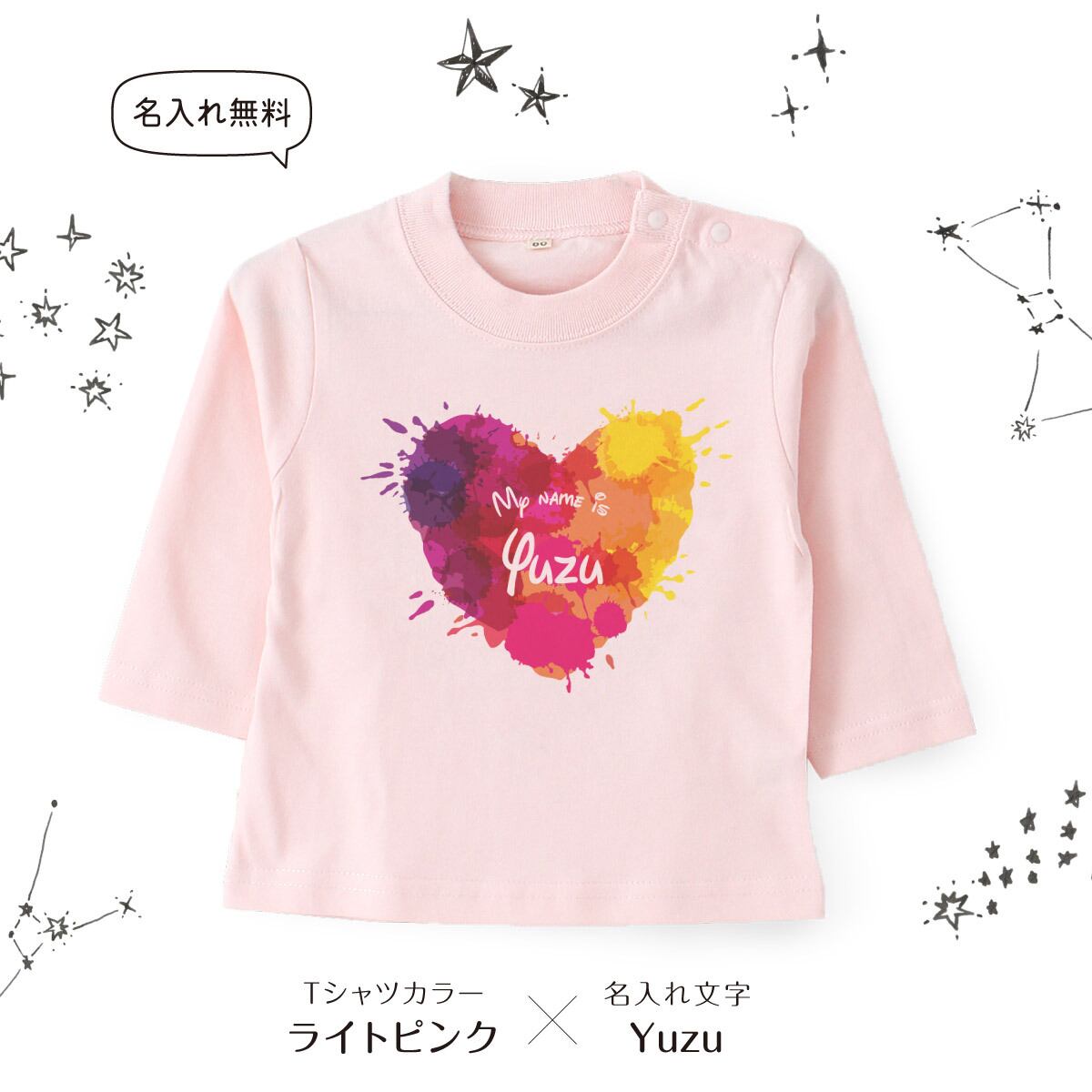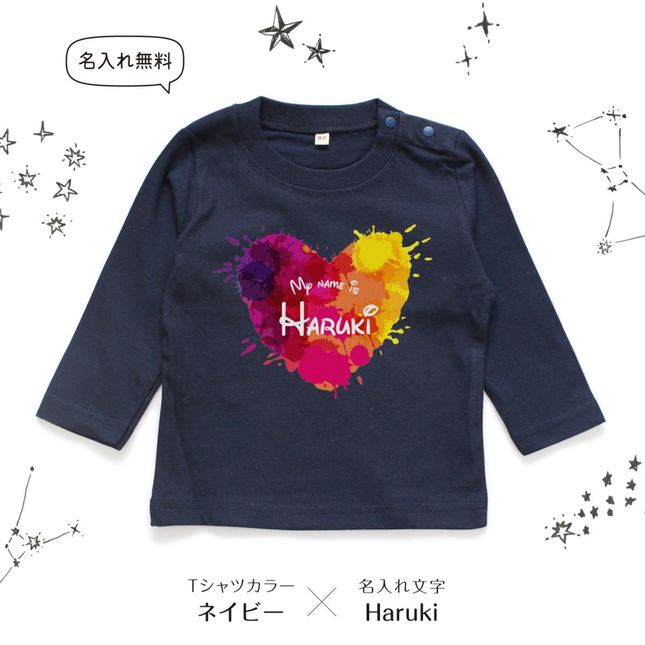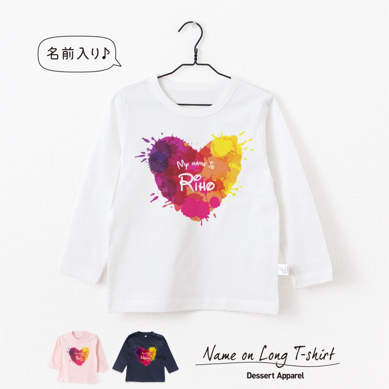 【長袖Tシャツ】名入れ キッズ ベビー ハート03 ギフト 80cm 90cm 110cm 130cm 名前入り 出産祝い 誕生日 プレゼント 男の子 女の子 バースデー 赤ちゃん服 子供服 イニシャル ネーム おしゃれ かわいい 人気 おそろい 兄弟 姉妹 メール便送料無料 | Dessert Apparel