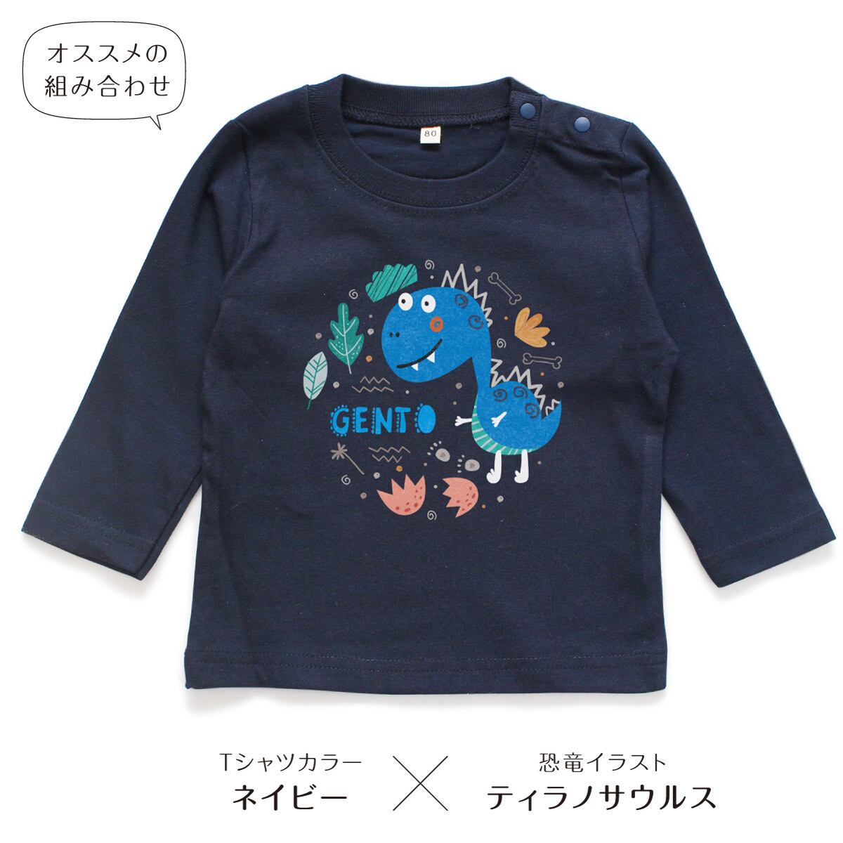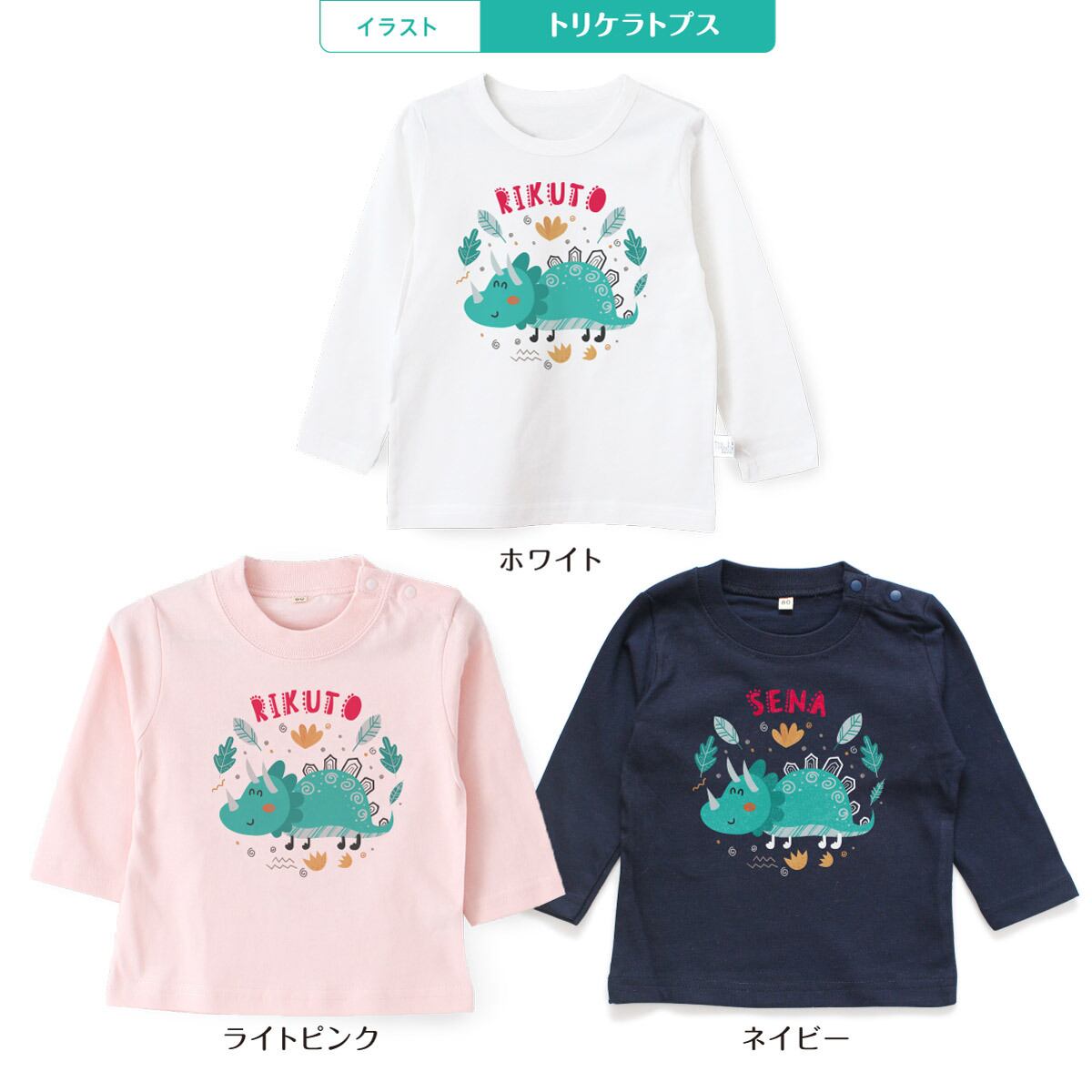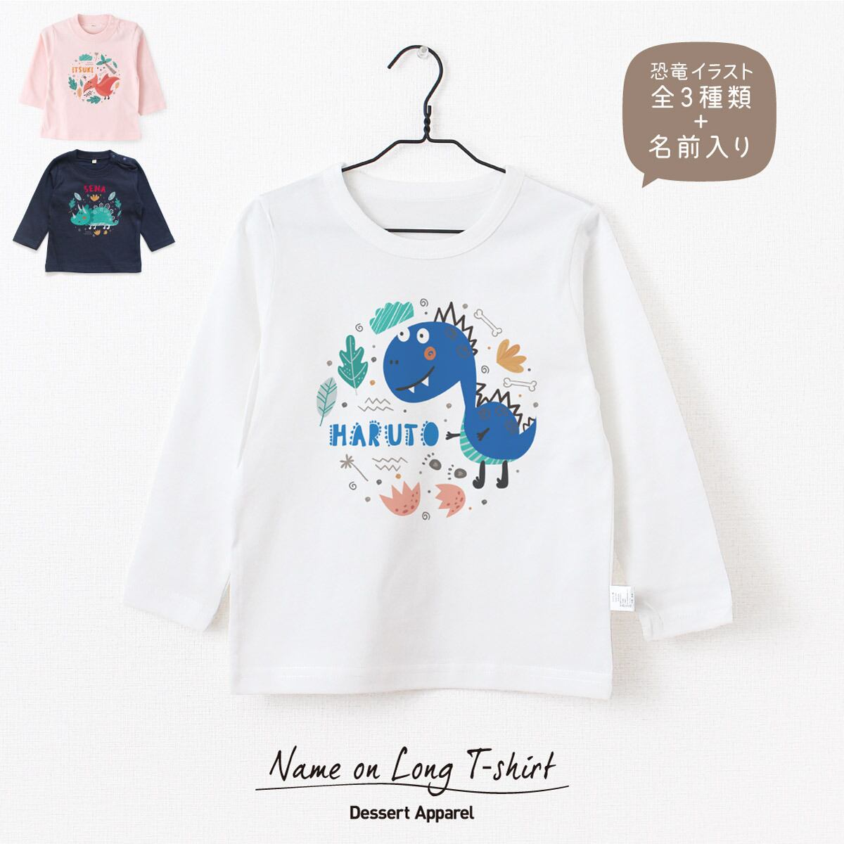 【長袖Tシャツ】名入れ キッズ ベビー 恐竜01 ティラノサウルス トリケラトプス プテラノドン 80 90 110 130 150 名前入り 出産祝い ギフト 誕生日 バースデー 赤ちゃん服 子供服 ネーム おしゃれ かわいい 人気 双子 兄弟 姉妹 スポーツ 運動会 イベント 記念フォト | Dessert Apparel
