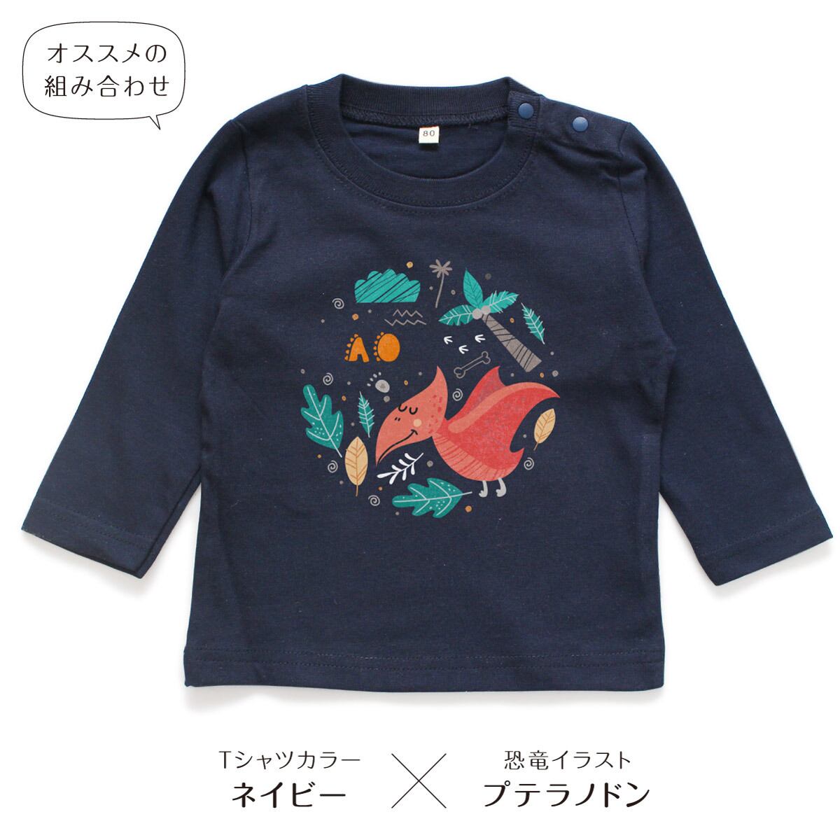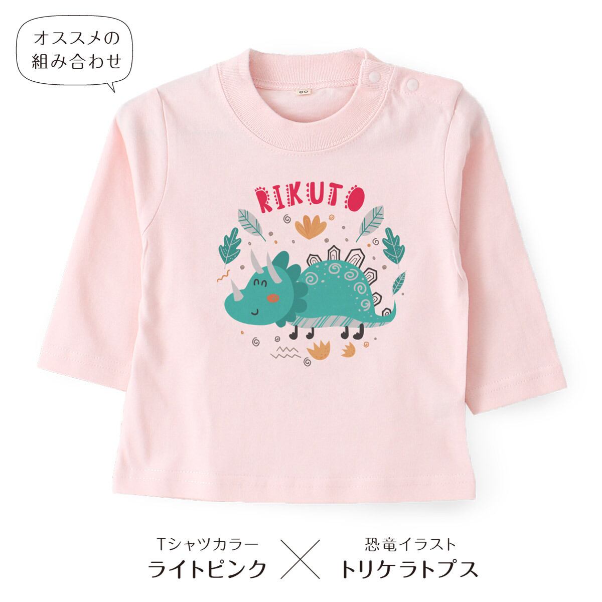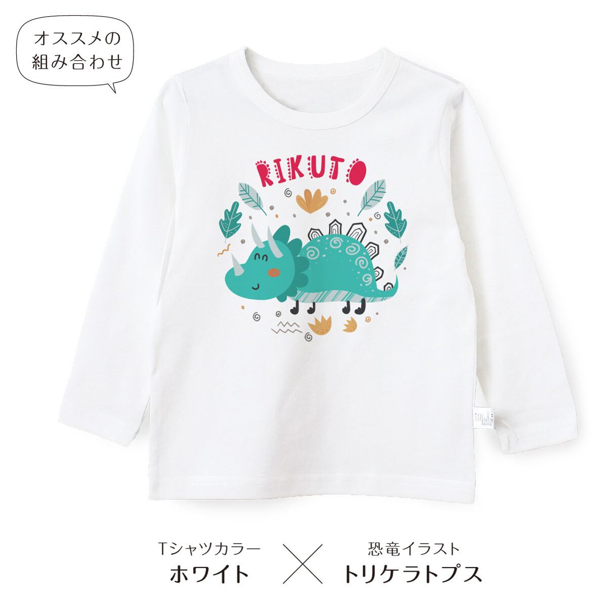 【長袖Tシャツ】名入れ キッズ ベビー 恐竜01 ティラノサウルス トリケラトプス プテラノドン 80 90 110 130 150 名前入り 出産祝い ギフト 誕生日 バースデー 赤ちゃん服 子供服 ネーム おしゃれ かわいい 人気 双子 兄弟 姉妹 スポーツ 運動会 イベント 記念フォト | Dessert Apparel