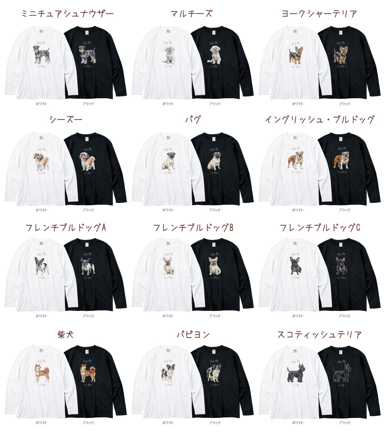 長袖Tシャツ 名入れ 犬01 ペット 愛犬 ロンT プードル チワワ ダックスフンド ビション コーギー ポメラニアン ミニチュアシュナウザー マルチーズ ヨークシャーテリア シーズー パグ フレンチブルドッグ パピヨン ゴールデンレトリバー 柴犬 スコティッシュテリア ラブラ | Dessert Apparel