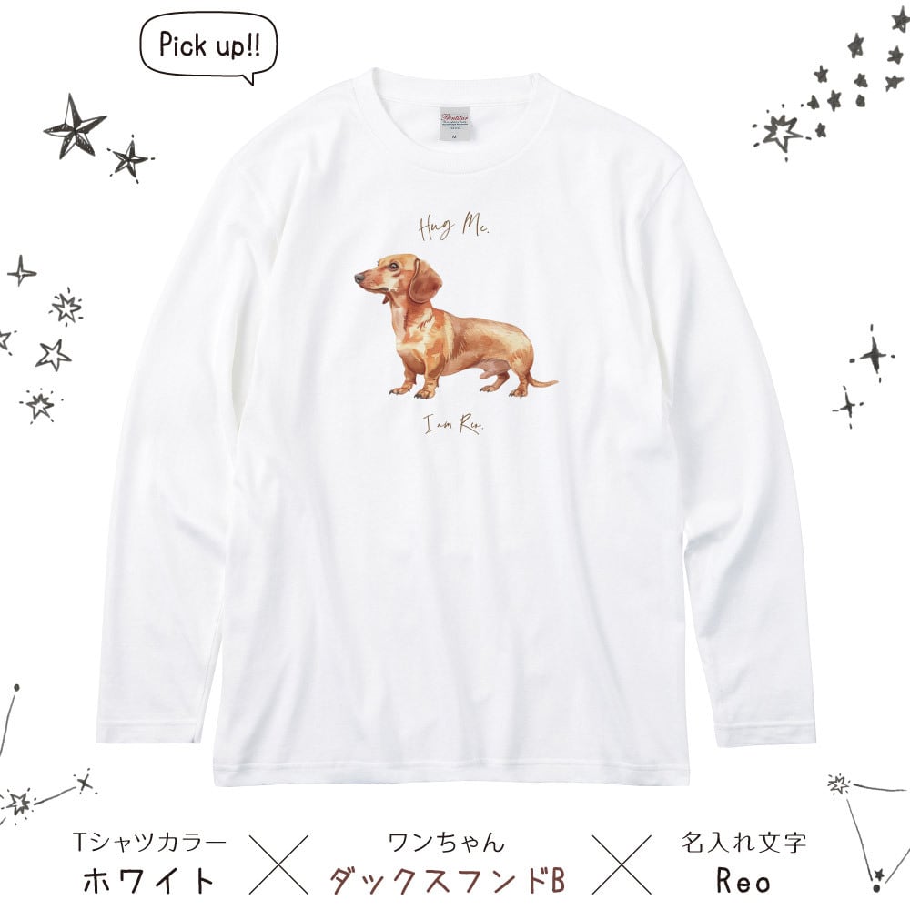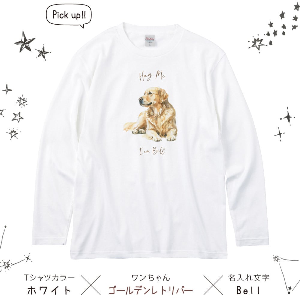 可愛いワンちゃんの名入れができる、オリジナル名入れ長袖Tシャツです。