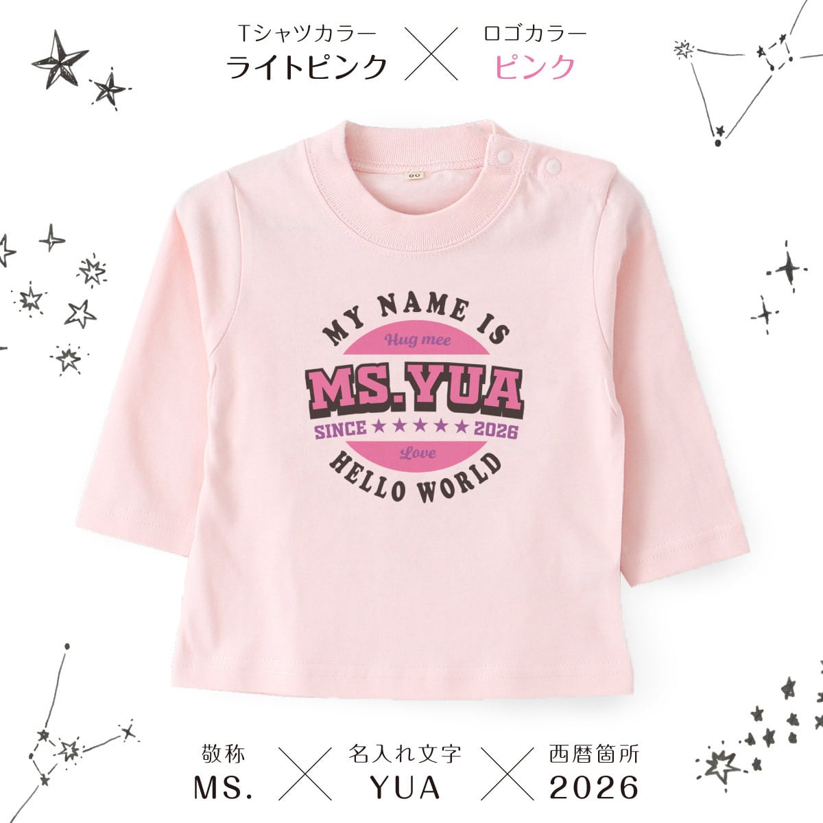 名入れができる綿100%の着心地のいい可愛いTシャツです。