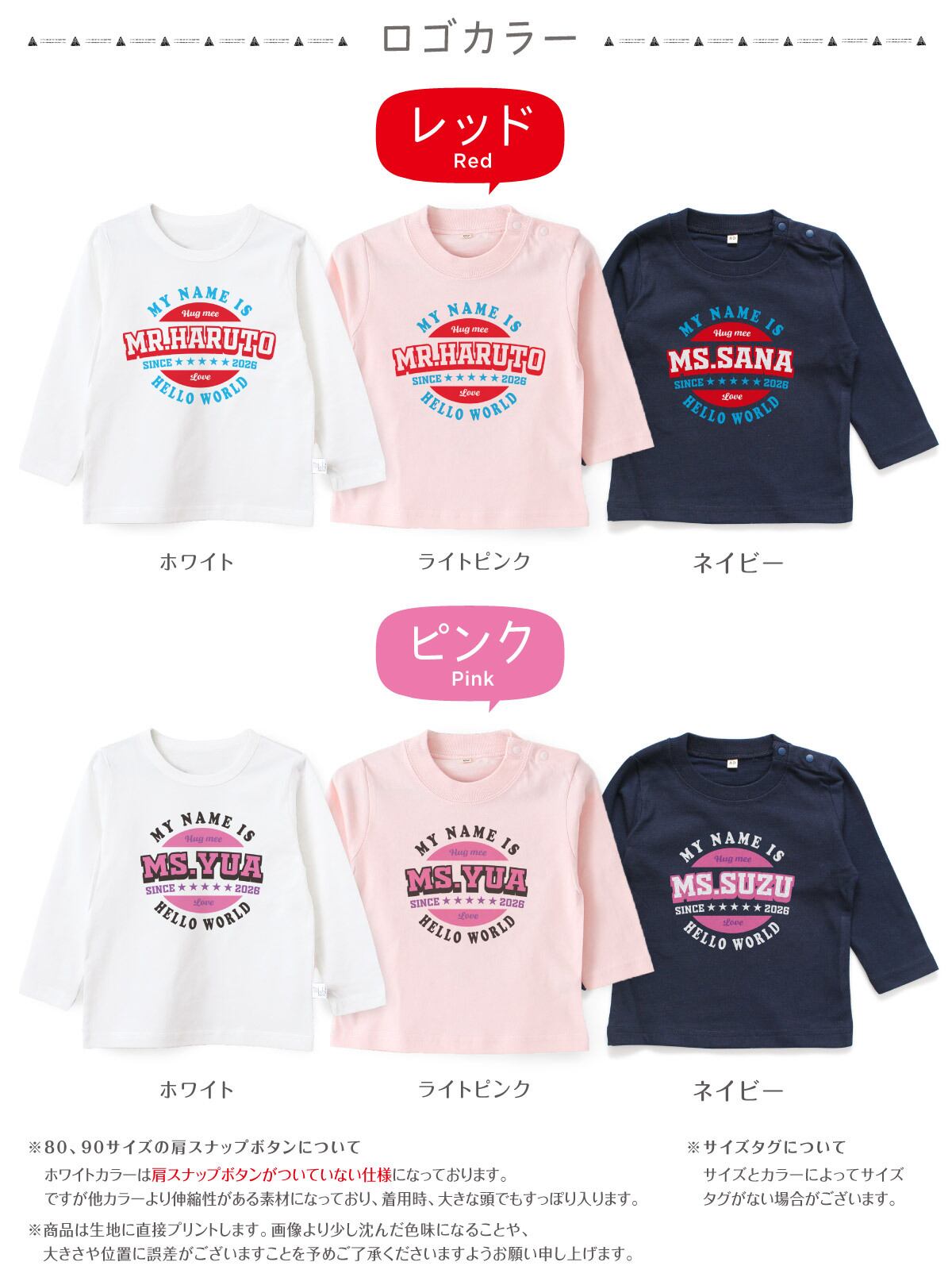 ・印刷位置などに多少のズレが出ることがあります。またモニターの仕様などにより写真と商品の色が多少異なる場合があります。予めご了承ください。