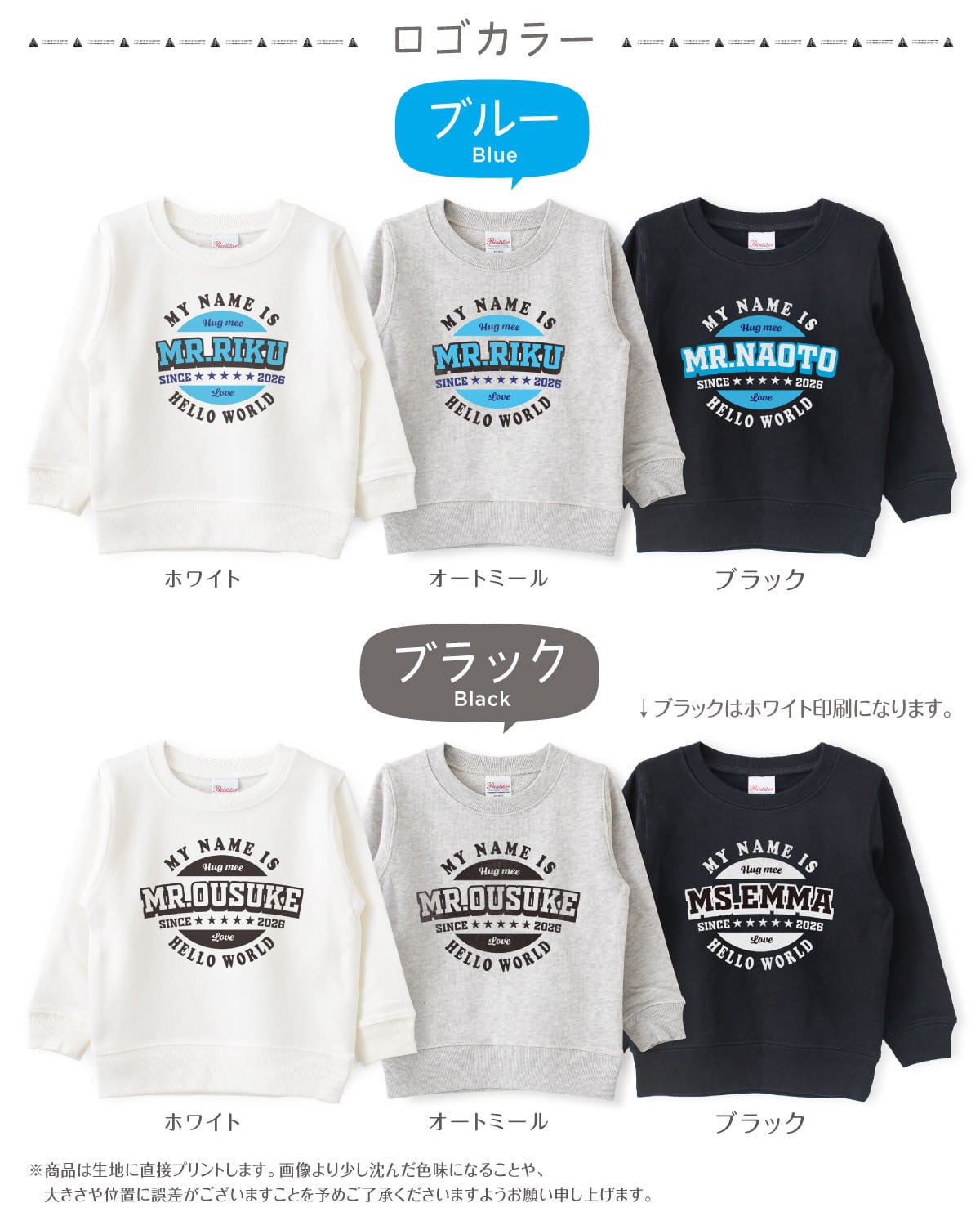 ベイビー キッズ 名前入れ 名入れ バースデー トレーナー スウェット 100cm 110cm 120cm 130cm 140cm 150cm 綿100% 赤ちゃん 赤ちゃん服 ベビー 子供服 イニシャル 子供服 ジュニア ベビー 子供 こども 子ども おそろい おしゃれ かわいい イニシャル 名前入り ネーム サイン 男の子 女の子 誕生日 ギフト プレゼント 出産祝い 長袖 バースデー お祝い 内祝い 兄弟 姉妹 お友達 パパ ママ boy girl baby kids ローマ字 英語 コットン ホワイト 白 黒 ブラック オートミール グレー カレッジ ロゴ アメカジ ペアルック 親子ペア 親子コーデ 親子リンク リンクコーデ ファミリー パパ ママ 記念撮影 バースデーフォト 運動会 幼稚園 保育園 小学校 クラブ チームトレーナー 家族写真 ハーフバースデーフォト キャンプ