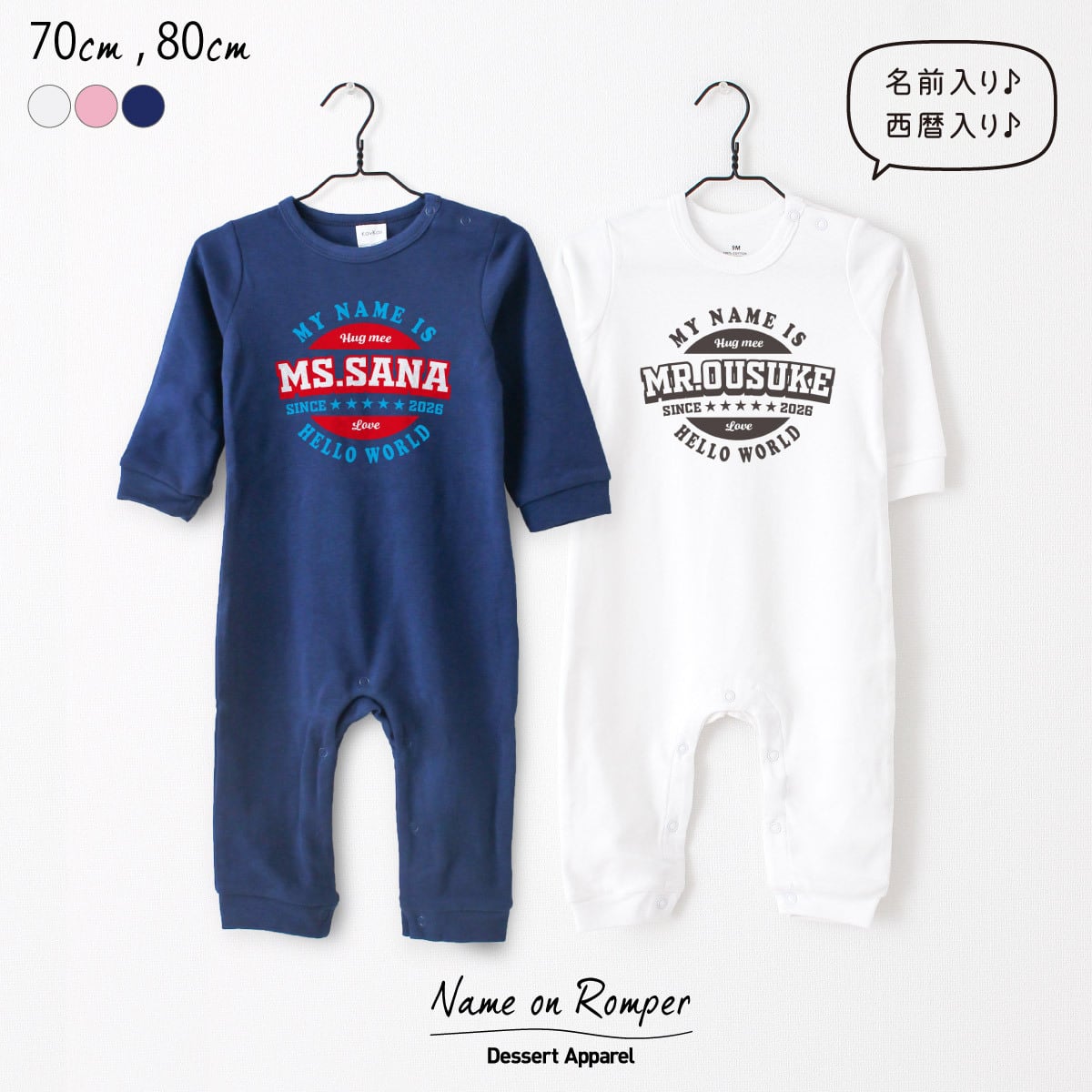 【長袖】名入れ ロンパース ベビー服 カレッジロゴ04 アメカジ ストリート 名前入り 出産祝い 誕生日 お祝い プレゼント ギフト 名前入れ ハーフバースデーフォト おしゃれ かわいい お洒落 可愛い 赤ちゃん服 人気 おそろ 双子コーデ 兄弟 姉妹 男の子 女の子 記念撮影 親子 | Dessert Apparel