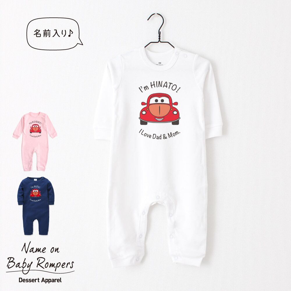 【長袖】名入れ ロンパース ベビー服 くるま01 車 カー 名前入り 出産祝い 誕生日 お祝い プレゼント ギフト 名前入れ ハーフバースデーフォト おしゃれ かわいい お洒落 可愛い 赤ちゃん服 人気 おそろい 双子コーデ 兄弟 姉妹 男の子 女の子 記念撮影 内祝 親子コーデ | Dessert Apparel