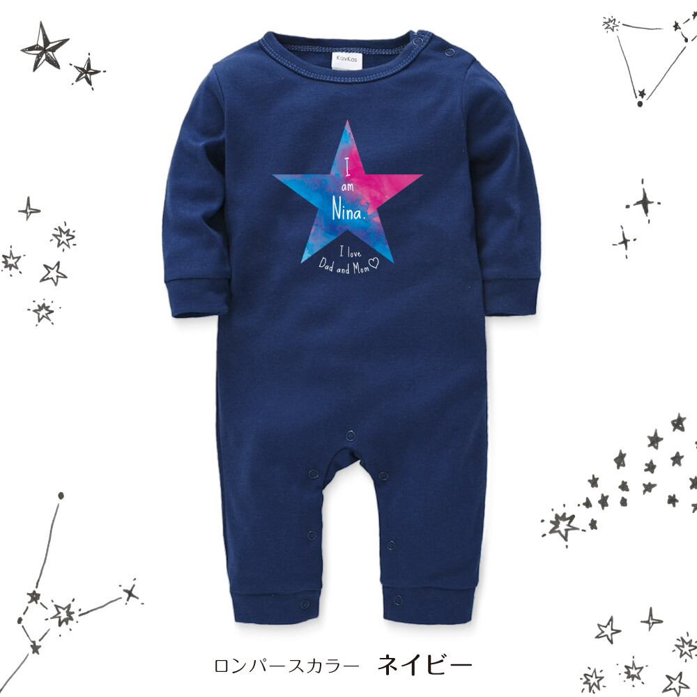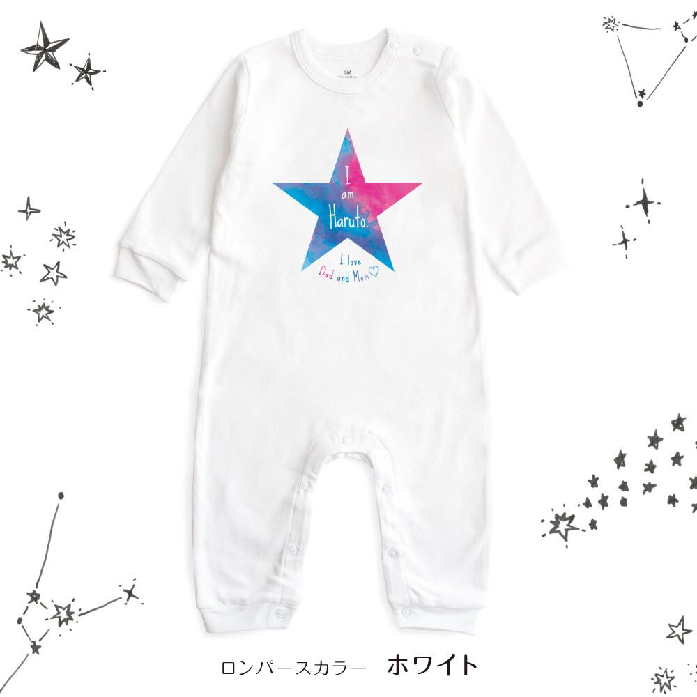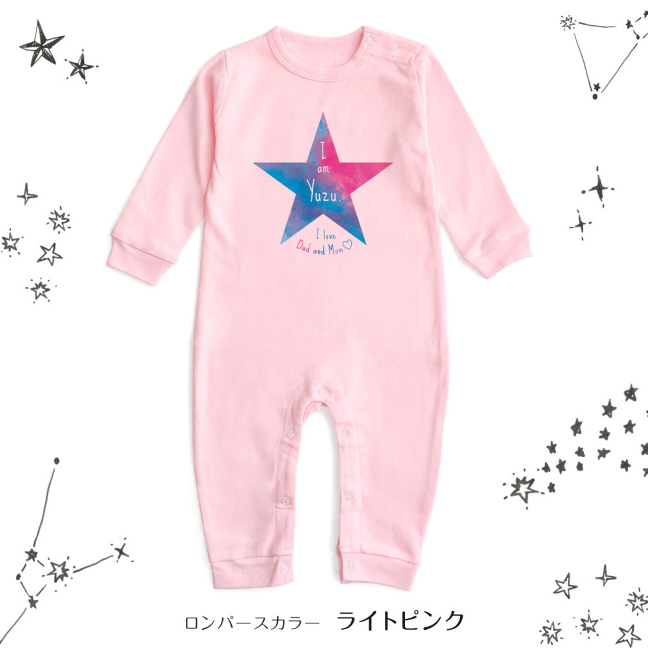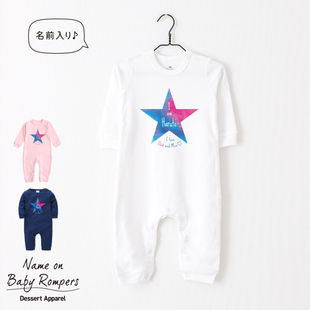 【長袖】名入れ ロンパース ベビー服 水彩風ビッグスター 名前入り 出産祝い 誕生日 お祝い プレゼント ギフト 名前入れ ハーフバースデーフォト おしゃれ かわいい お洒落 可愛い 赤ちゃん服 人気 おそろい 双子コーデ 兄弟 姉妹 男の子 女の子 記念撮影 内祝 親子コーデ | Dessert Apparel