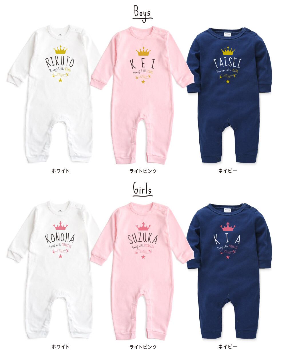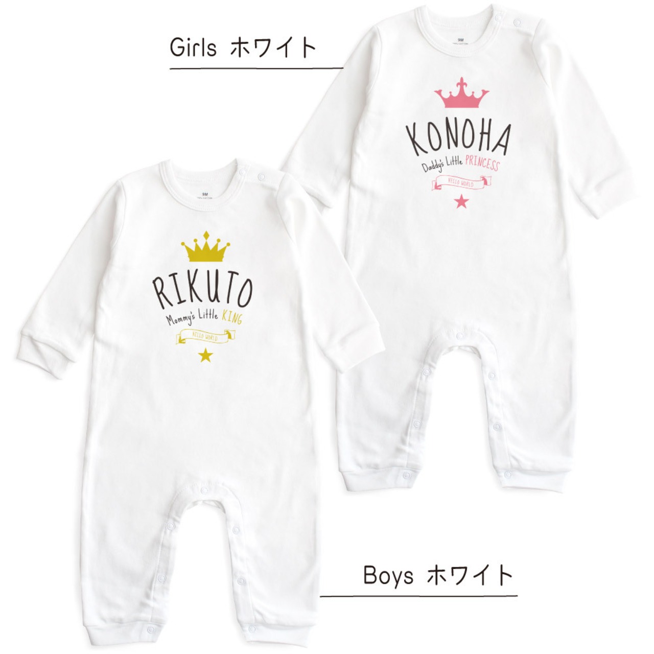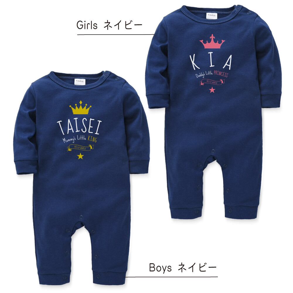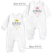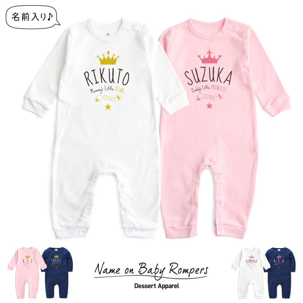【長袖】名入れ ロンパース ベビー服 クラウン&ティアラ01 王冠 名前入り 出産祝い 誕生日 お祝い プレゼント ギフト 名前入れ ハーフバースデーフォト おしゃれ かわいい お洒落 可愛い 赤ちゃん服 人気 おそろい 双子コーデ 兄弟 姉妹 男の子 女の子 記念撮影 内祝 親子 | Dessert Apparel