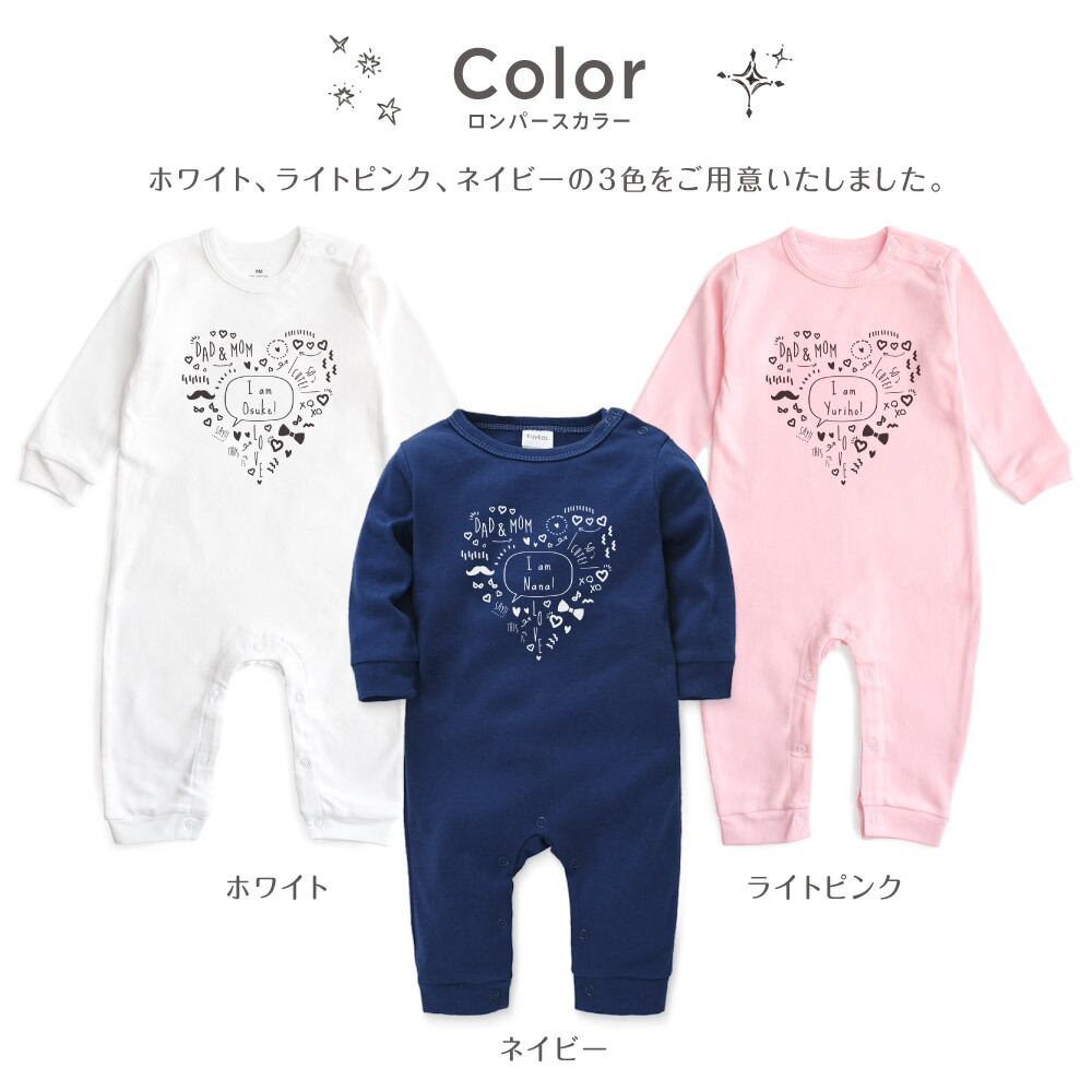 名入れ無料の赤ちゃんにやさしい綿100%の着心地のいい可愛いロンパースです。
