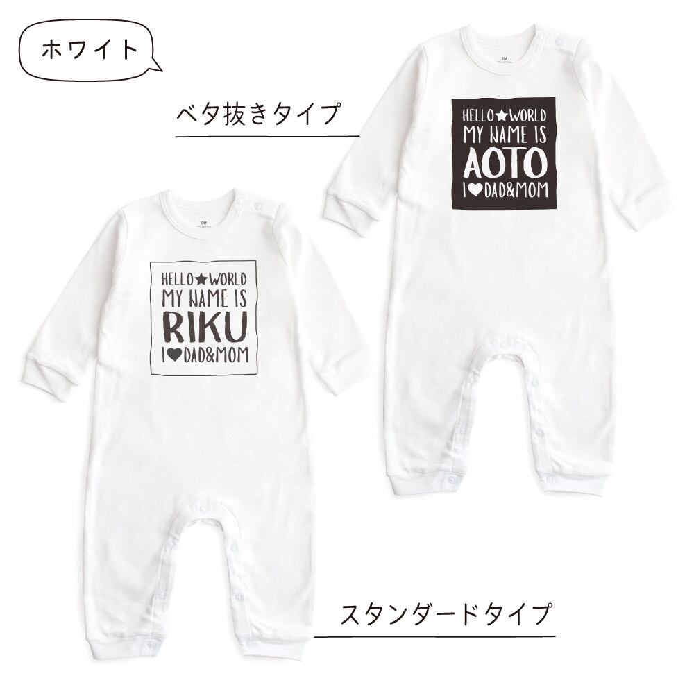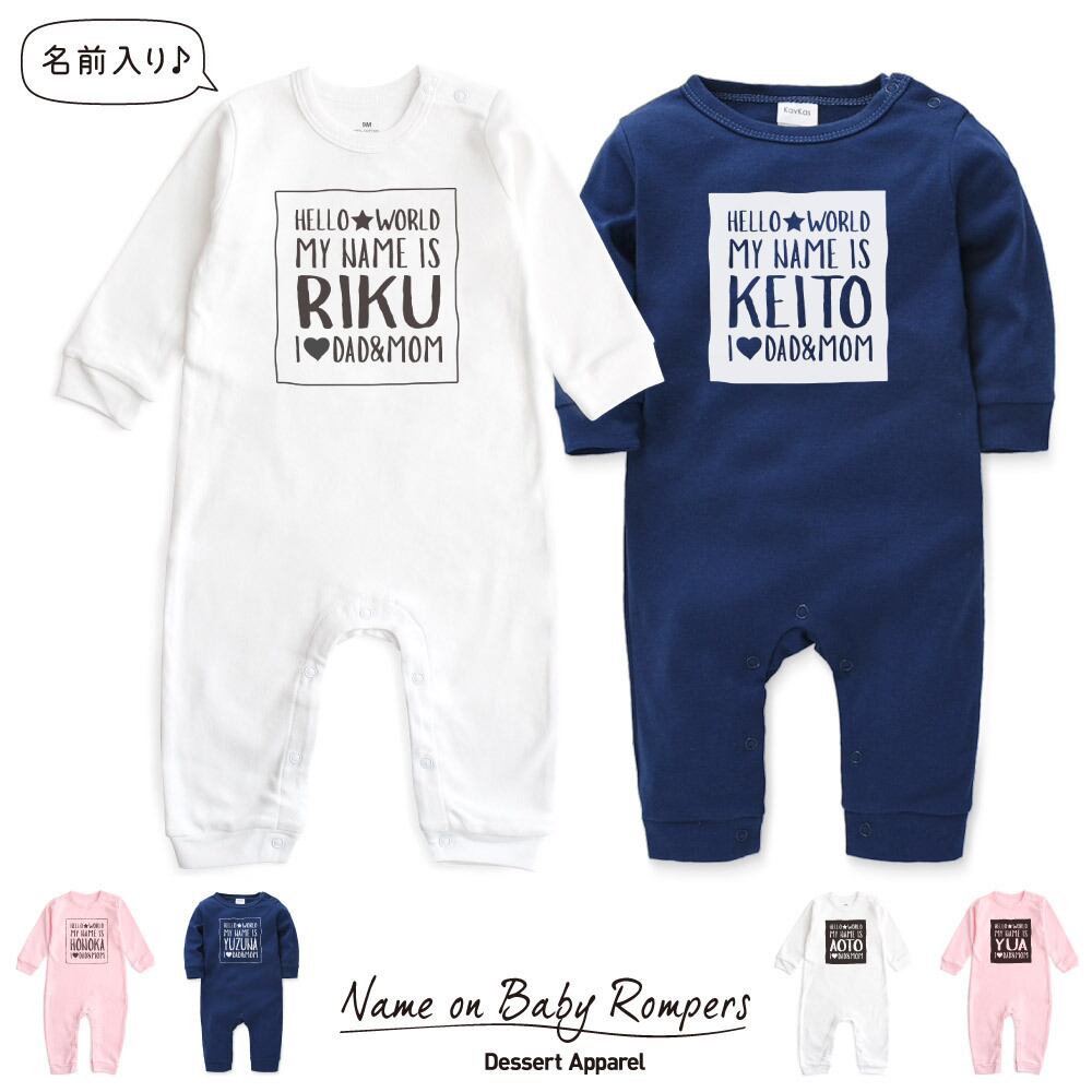 【長袖】名入れ ロンパース ベビー服 タイポ01 ボックスロゴ 名前入り 出産祝い 誕生日 お祝い プレゼント ギフト 名前入れ ハーフバースデーフォト おしゃれ かわいい お洒落 可愛い 赤ちゃん服 人気 おそろい 双子コーデ 兄弟 姉妹 男の子 女の子 記念撮影 内祝 親子コーデ | Dessert Apparel