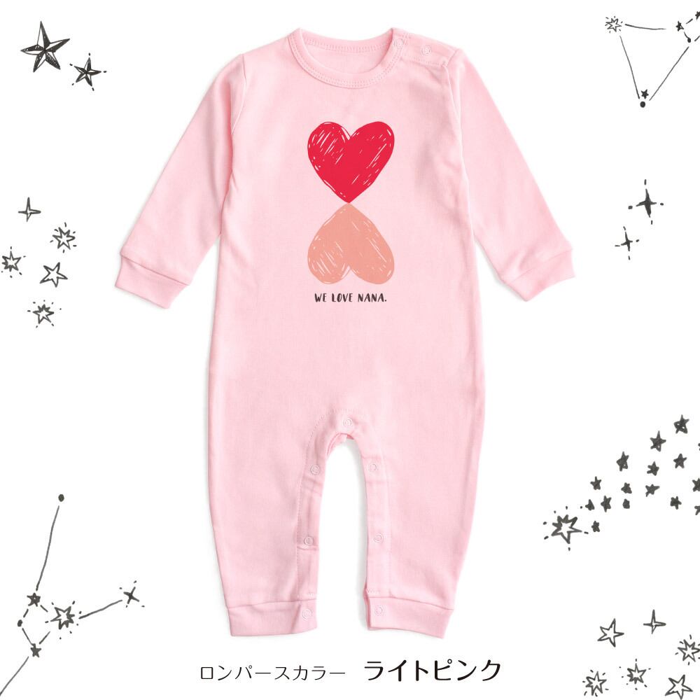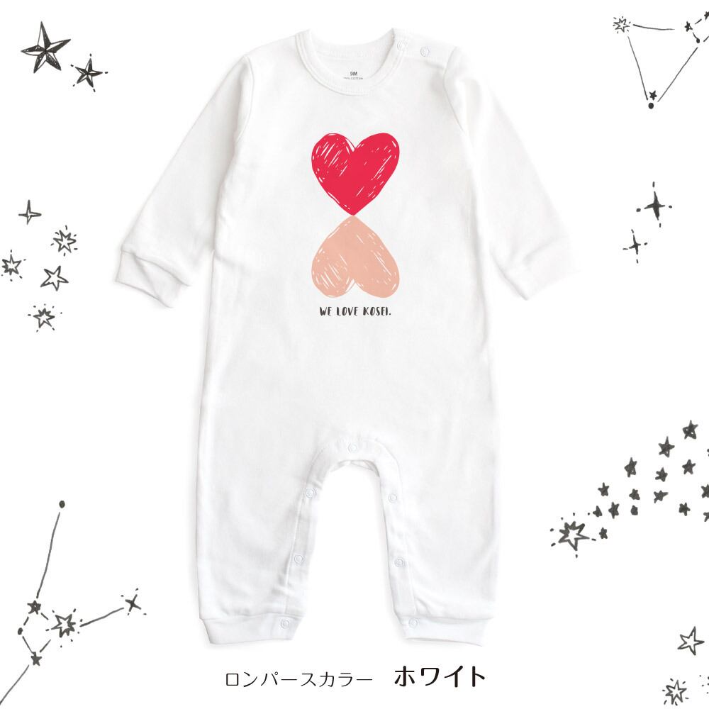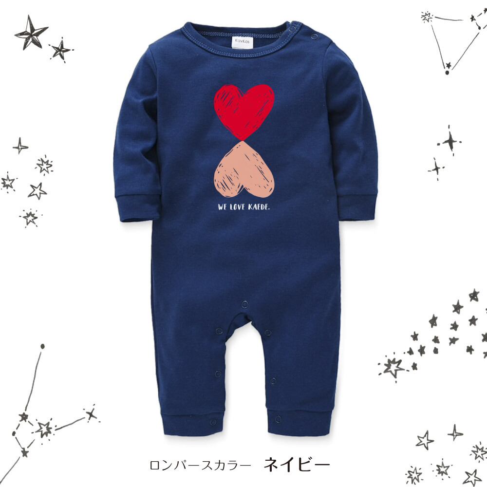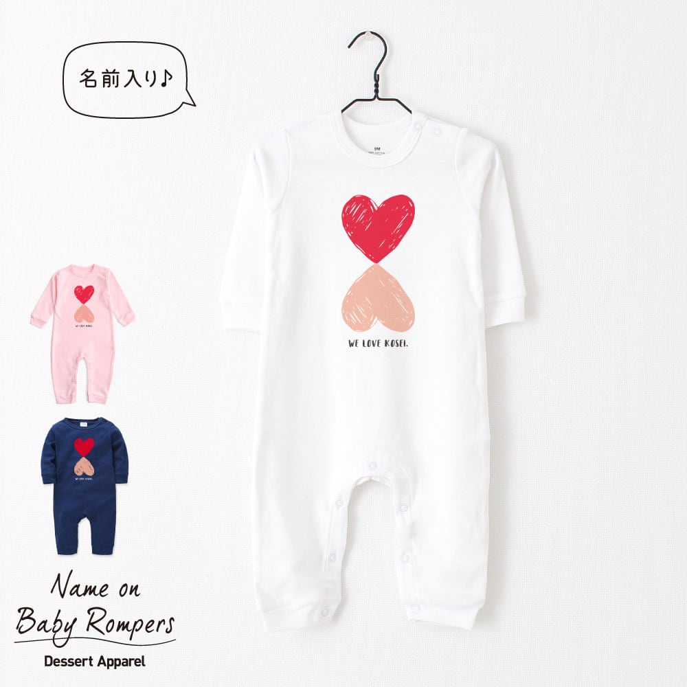 【長袖】名入れ ロンパース ベビー服 ハート01 名前入り 出産祝い 誕生日 お祝い プレゼント ギフト 名前入れ ハーフバースデーフォト おしゃれ かわいい お洒落 可愛い 赤ちゃん服 人気 おそろい 双子コーデ 兄弟 姉妹 男の子 女の子 記念撮影 内祝 親子コーデ | Dessert Apparel