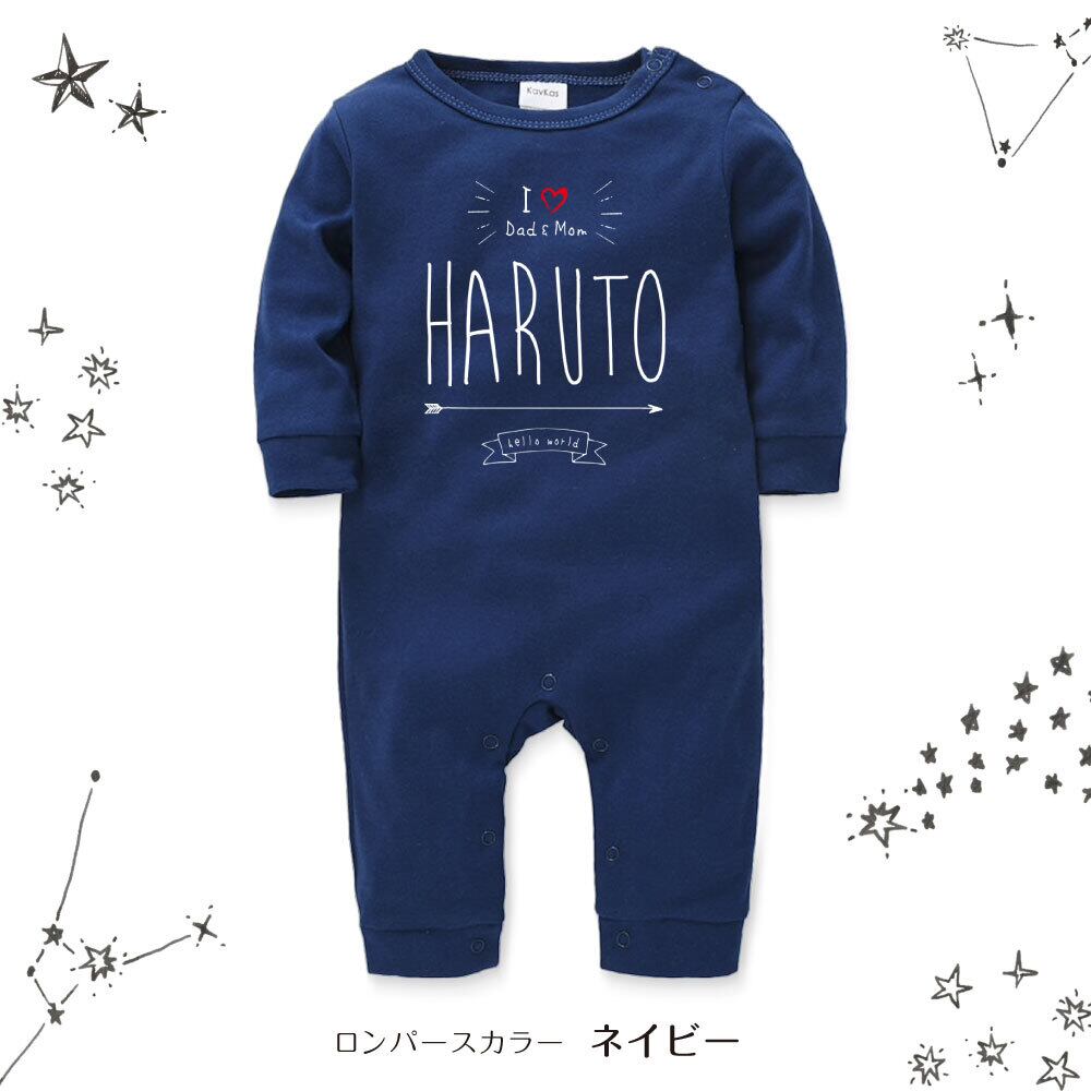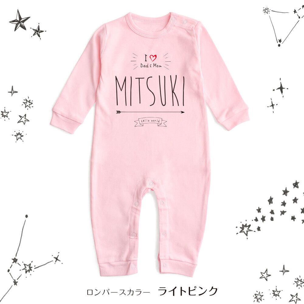 名入れ無料の赤ちゃんにやさしい綿100%の着心地のいい可愛いロンパースです。