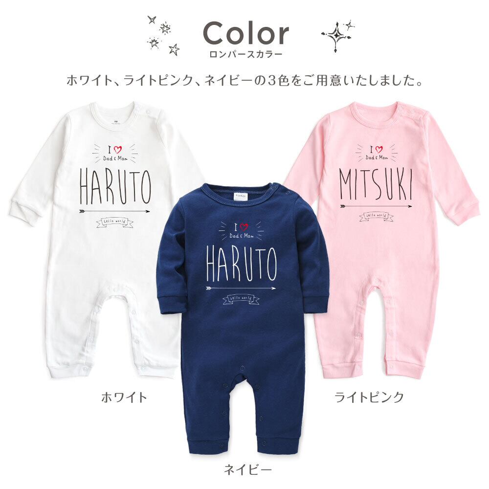 【長袖】名入れ ロンパース ベビー服 I love Dad & Mom 名前入り 出産祝い 誕生日 お祝い プレゼント ギフト 名前入れ ハーフバースデーフォト おしゃれ かわいい お洒落 可愛い 赤ちゃん服 人気 おそろい 双子コーデ 兄弟 姉妹 男の子 女の子 記念撮影 内祝 親子コーデ | Dessert Apparel