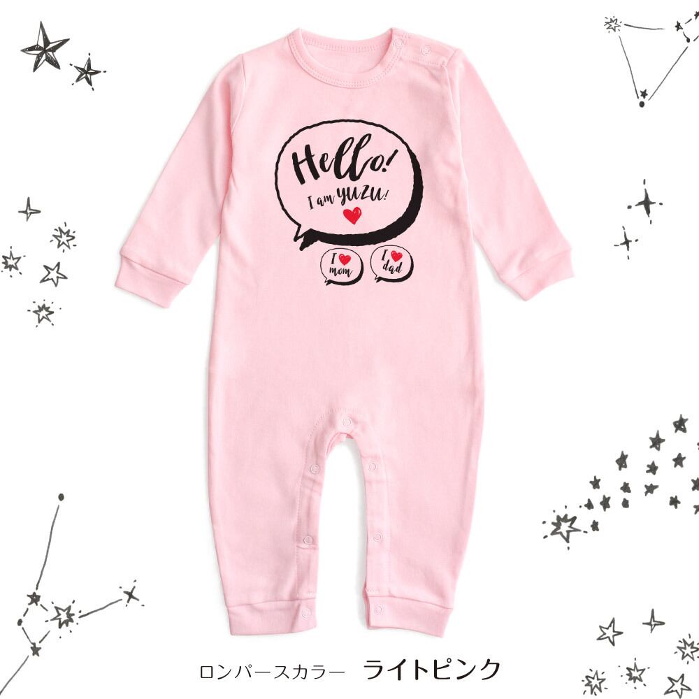 名入れ無料の赤ちゃんにやさしい綿100%の着心地のいい可愛いロンパースです。