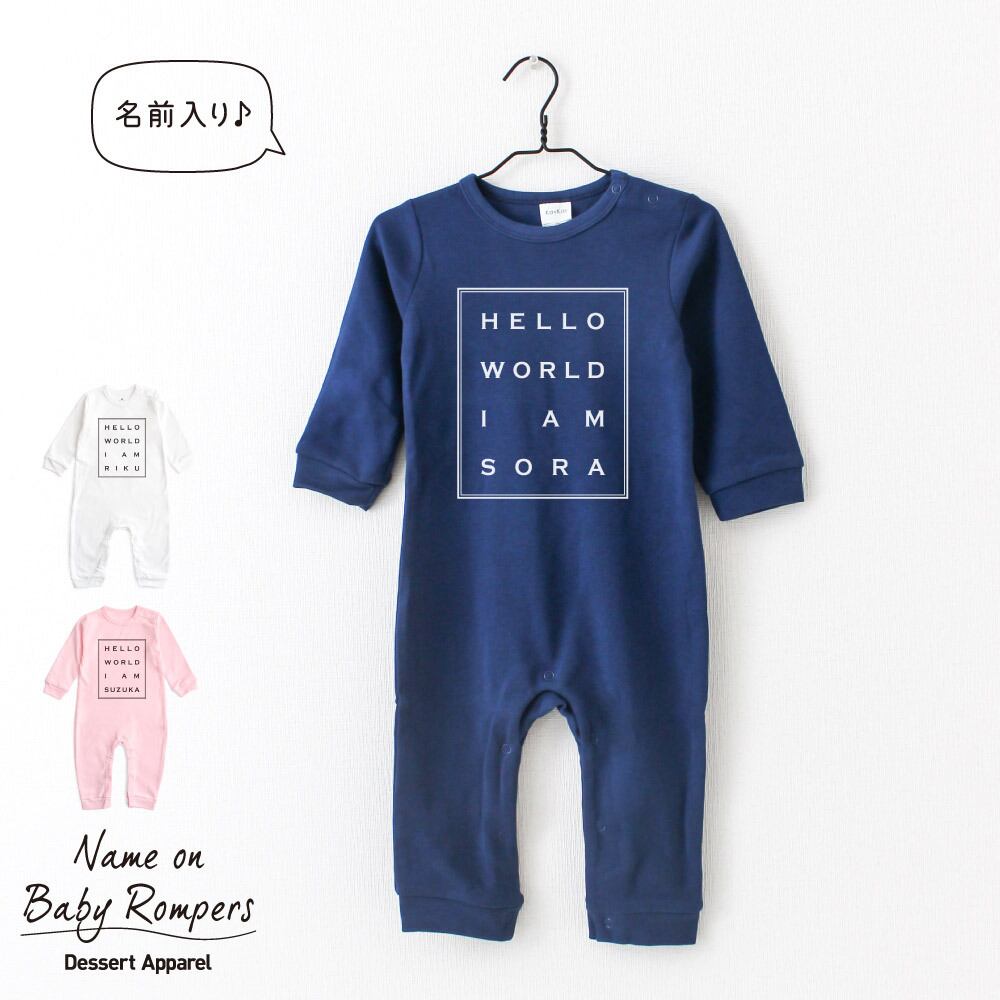 【長袖】名入れ ロンパース ベビー服 モードタイポ ボックスロゴ 名前入り 出産祝い 誕生日 お祝い プレゼント ギフト 名前入れ ハーフバースデーフォト おしゃれ かわいい お洒落 可愛い 赤ちゃん服 人気 おそろい 双子コーデ 兄弟 姉妹 男の子 女の子 記念撮影 内祝 親子コーデ | Dessert Apparel