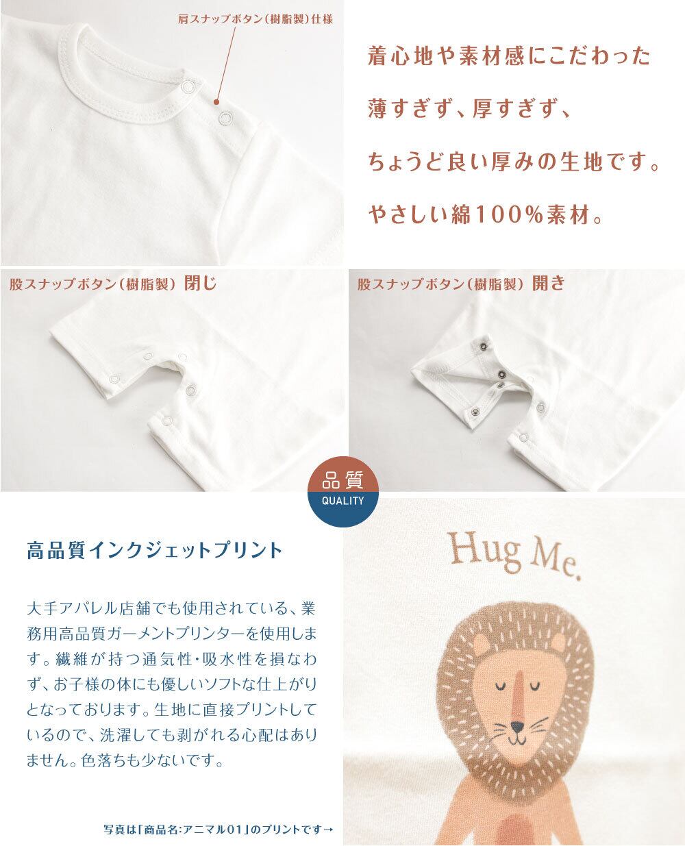 赤ちゃんにやさしい綿100%素材を使用。