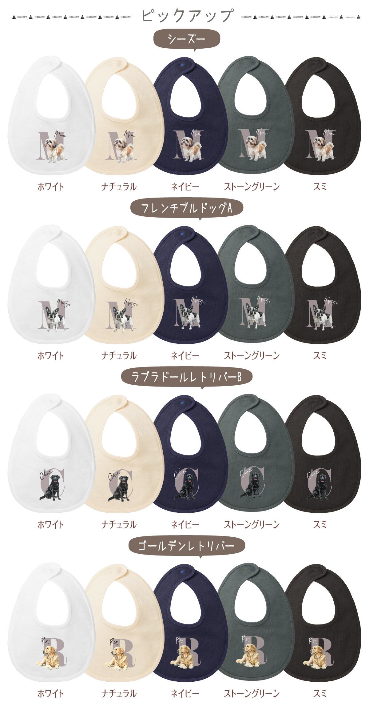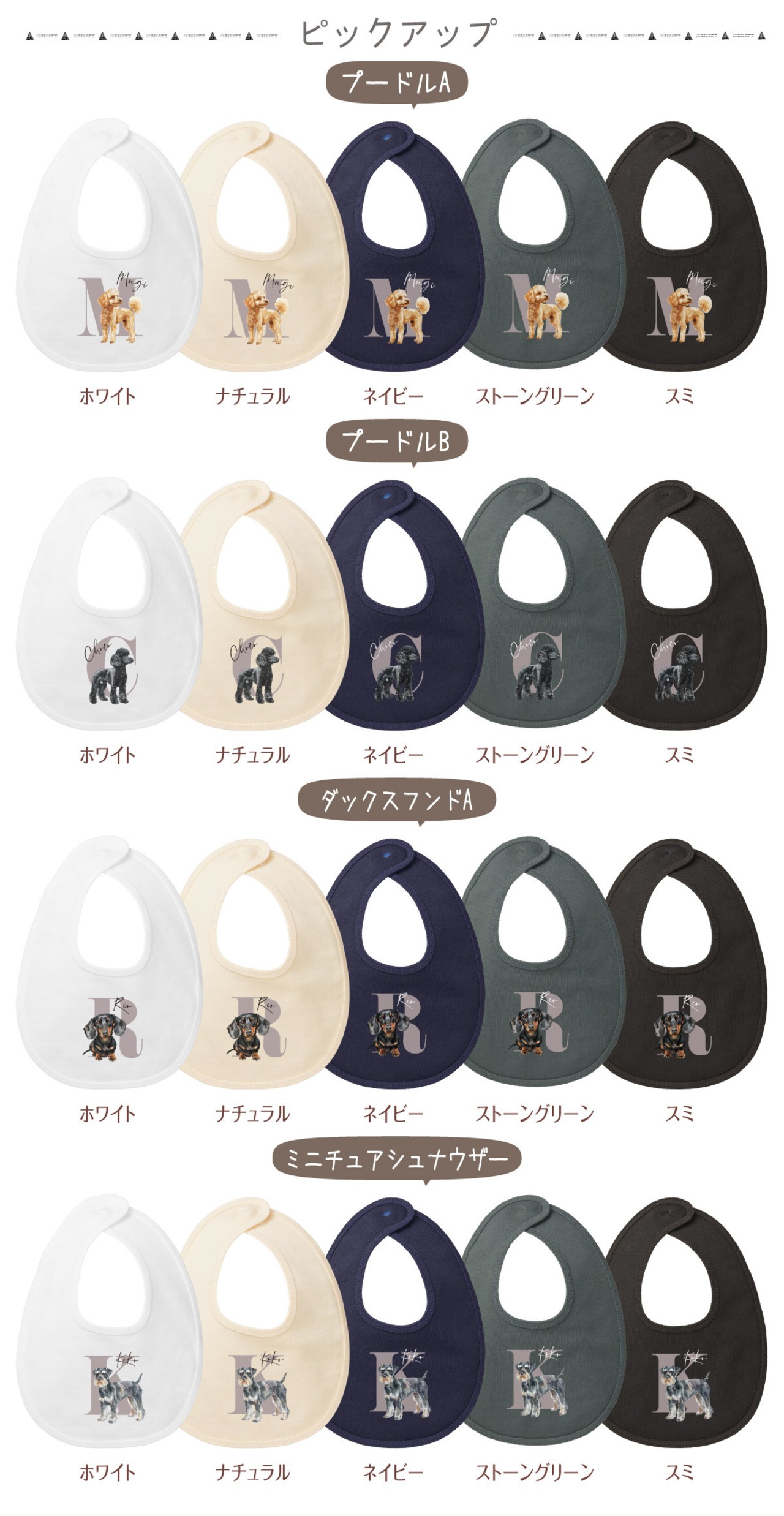出産祝い スタイ 名入れ 犬02 ペット 愛犬 プードル チワワ ダックスフンド ビション コーギー ポメラニアン ミニチュアシュナ ベビー ビブ よだれかけ お食事エプロン 誕生日 お祝い プレゼント ギフト 名前入れ バースデー 赤ちゃん 人気 おそろい 双子 兄弟 男の子 女の子 | Dessert Apparel