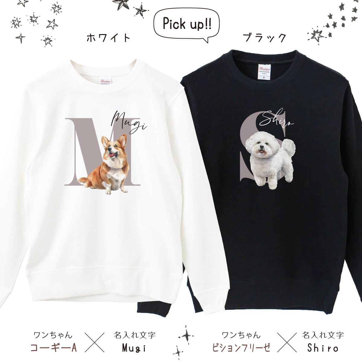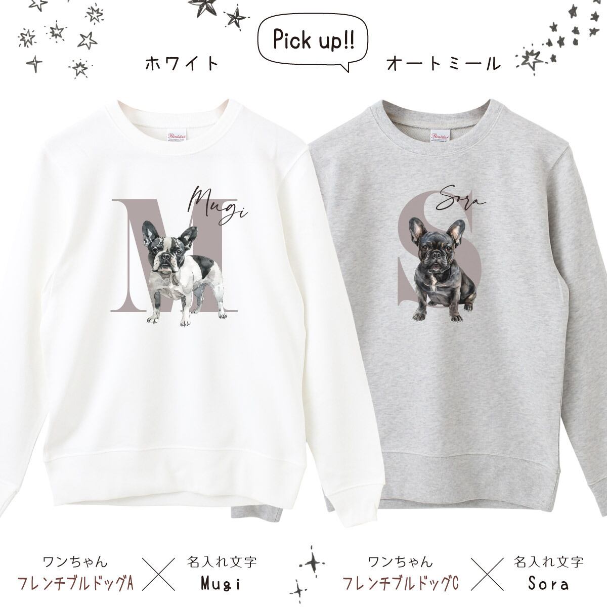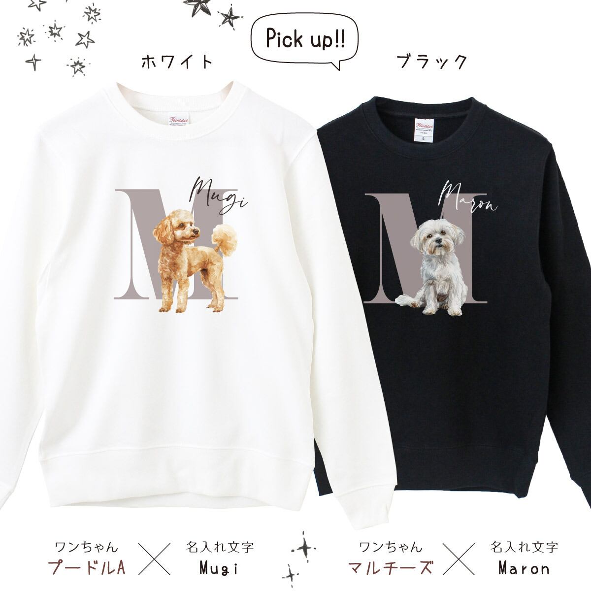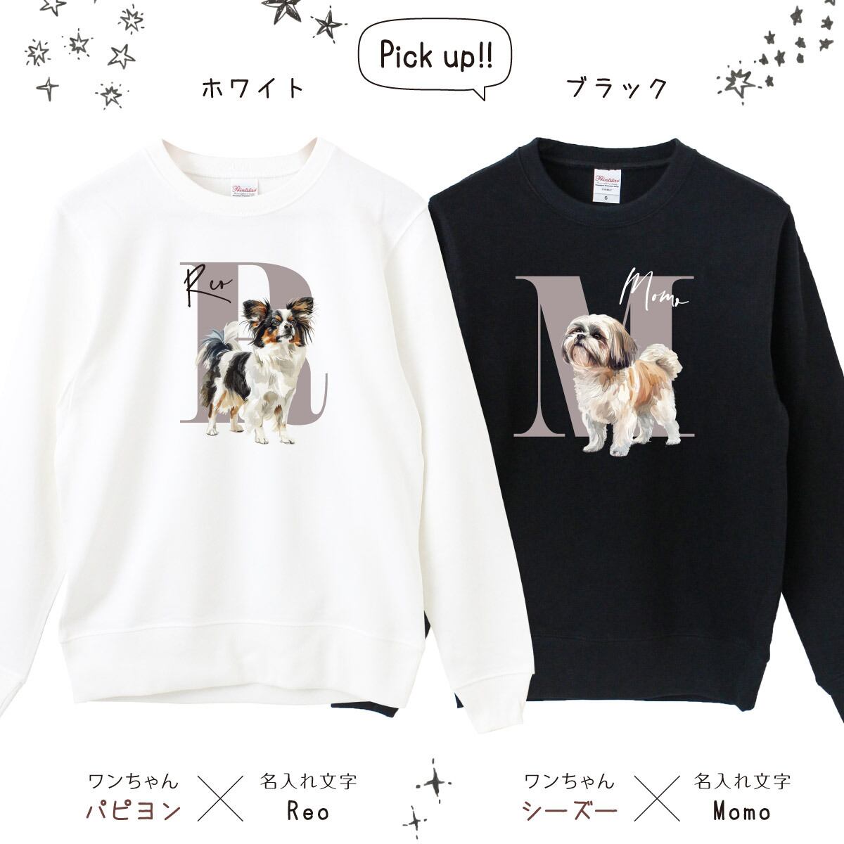 可愛いワンちゃんの名入れができる、世界に一つだけのオリジナル名前入れクルーネックトレーナー スウェットです♪