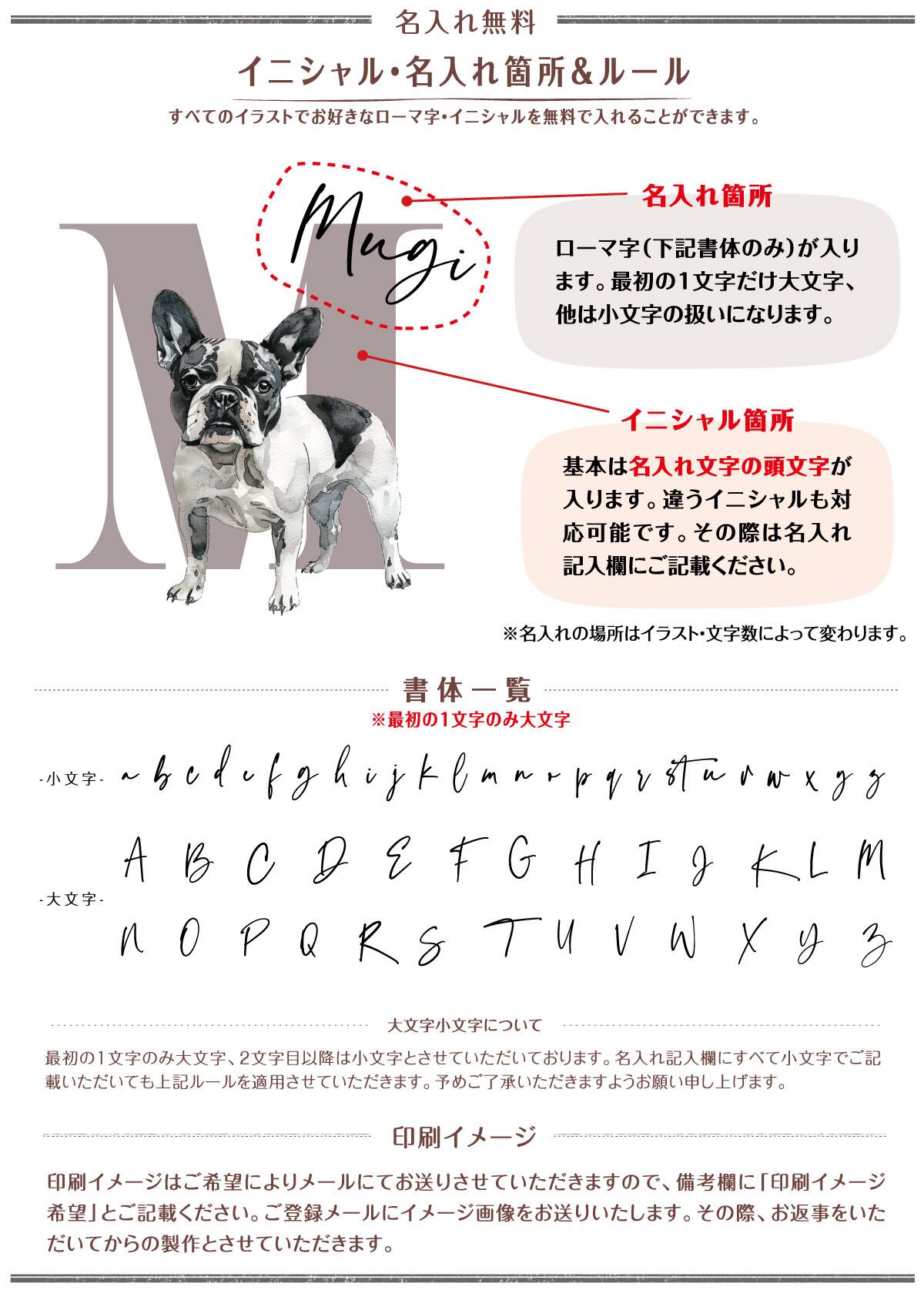 ・プリントする文字は商品画像「名入れ箇所」の「書体一覧」を必ずご確認ください。書体一覧に表示されている文字しか対応できませんので、予めご了承ください。