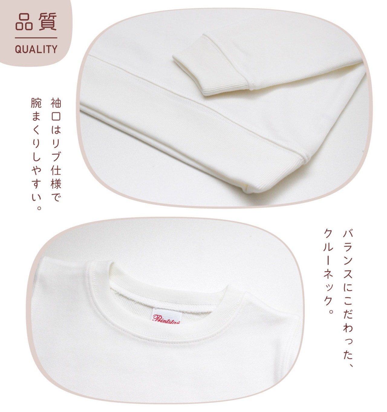 薄くて軽い着心地(裏パイル生地)が人気のトレーナーです。