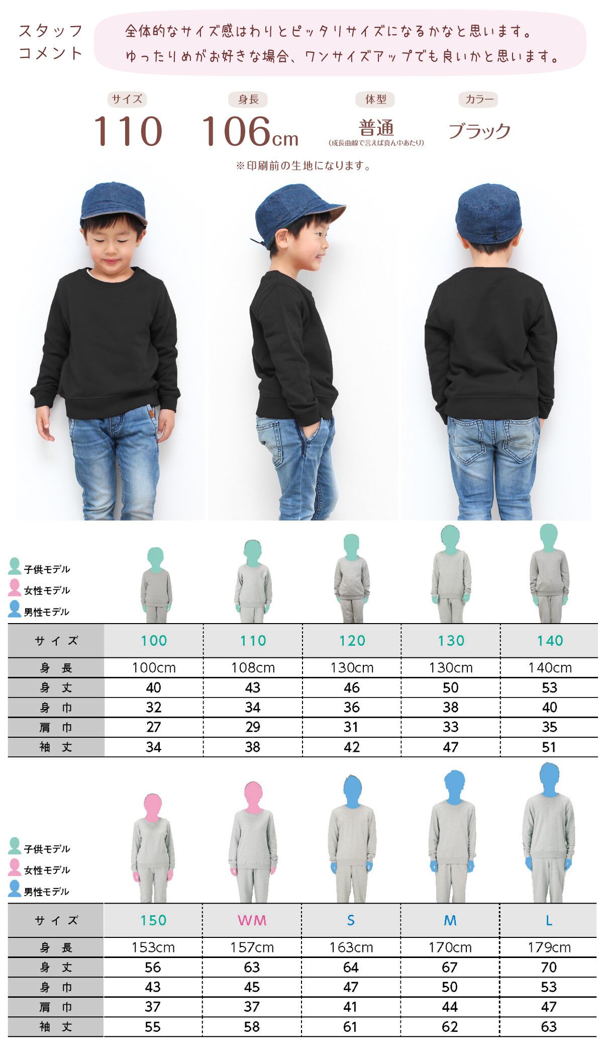 ・WMサイズ:身丈63/身巾45/肩巾37/袖丈58