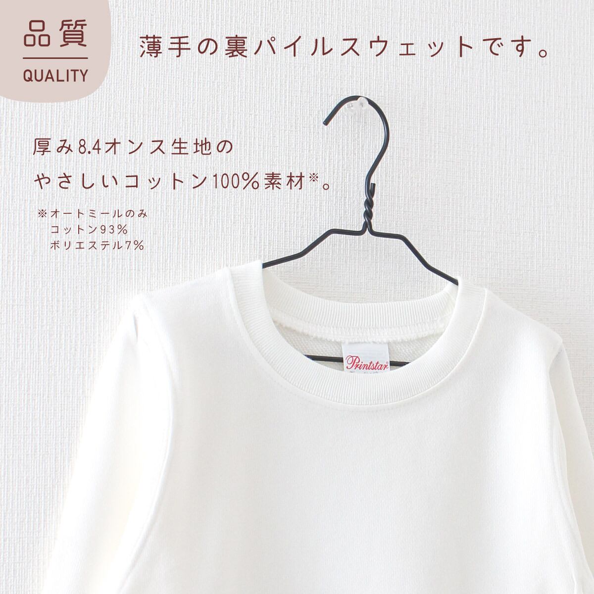 薄くて軽い着心地(裏パイル生地)が人気のトレーナーです。