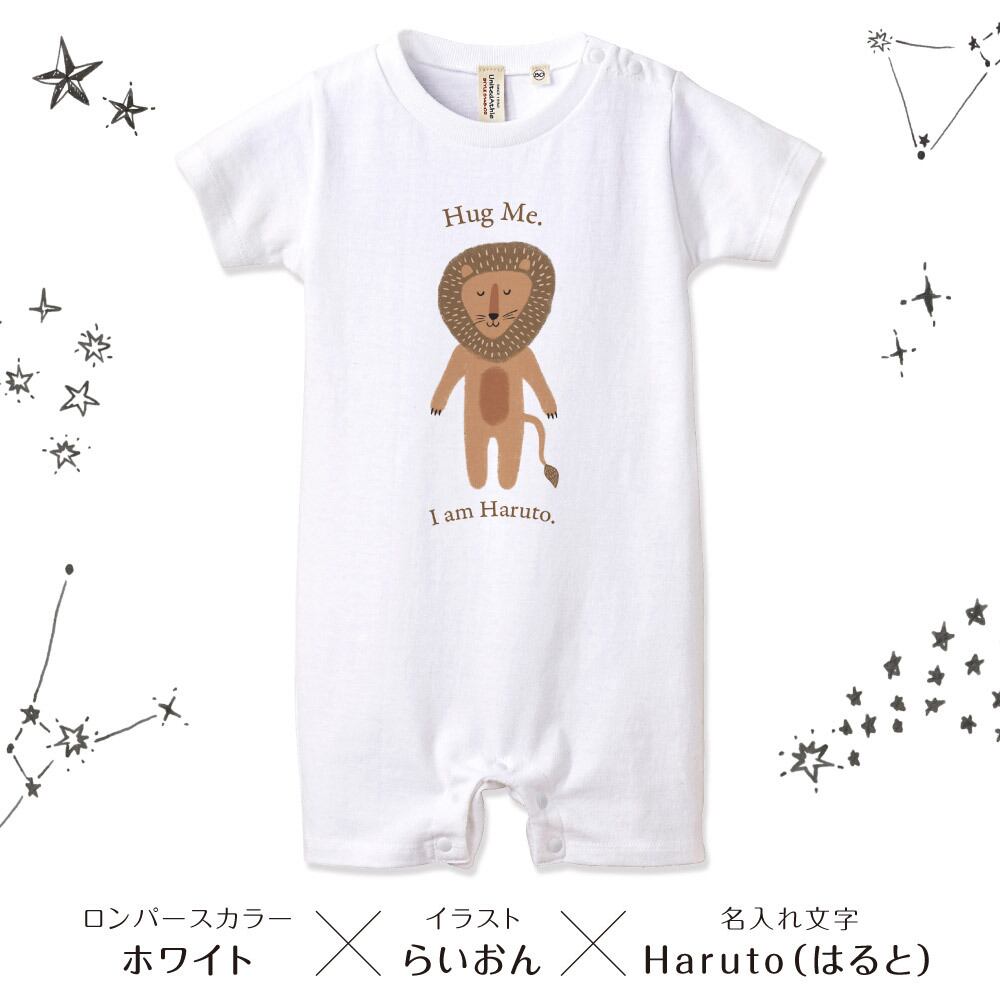 出産祝い ロンパース 名入れ アニマル01 動物 くま らいおん きりん あるぱか わに ぞう なまけもの ベビー服 70cm 80cm 誕生日 お祝い プレゼント ギフト 名前 イニシャル ネーム おしゃれ かわいい 可愛い バースデー 赤ちゃん服 人気 おそろ 双子 兄弟 姉妹 男の子 女の子 | Dessert Apparel