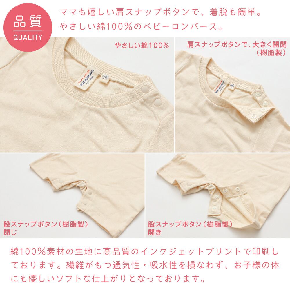 名入れができる綿100%の着心地のいい可愛いロンパースです。