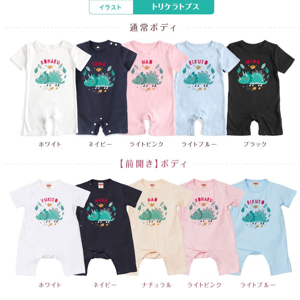 出産祝い 名入れ ロンパース 恐竜01 ティラノサウルス トリケラトプス プテラノドン ベビー服 70cm 80cm 誕生日 お祝い プレゼント ギフト 名前入れ バースデー ネーム おしゃれ かわいい お洒落 可愛い バースデー 赤ちゃん服 人気 おそろい 双子 兄弟 姉妹 男の子 女の子 | Dessert Apparel