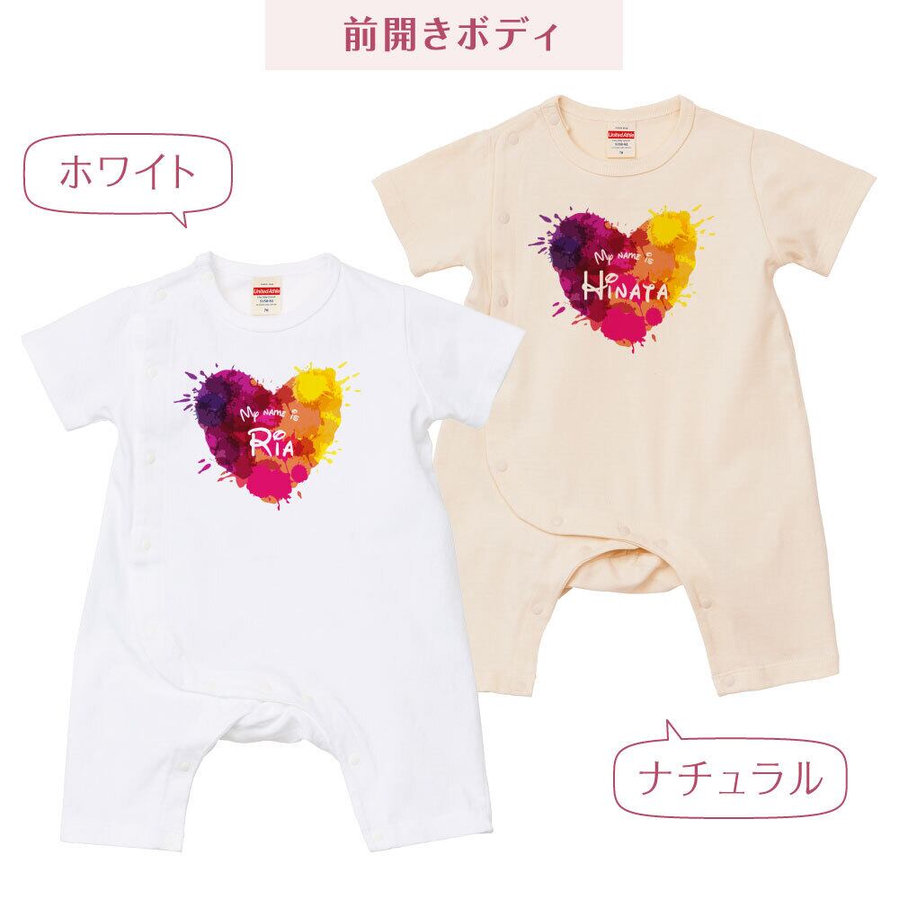 出産祝い 名入れ ロンパース ハート03 ベビー服 70cm 80cm 誕生日 お祝い プレゼント ギフト 名前入れ バースデー おしゃれ かわいい お洒落 可愛い バースデー 赤ちゃん服 人気 おそろい 双子 兄弟 姉妹 男の子 女の子 記念撮影 フォト | Dessert Apparel