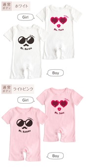 名入れ無料の綿100%の着心地のいい可愛いロンパースです。