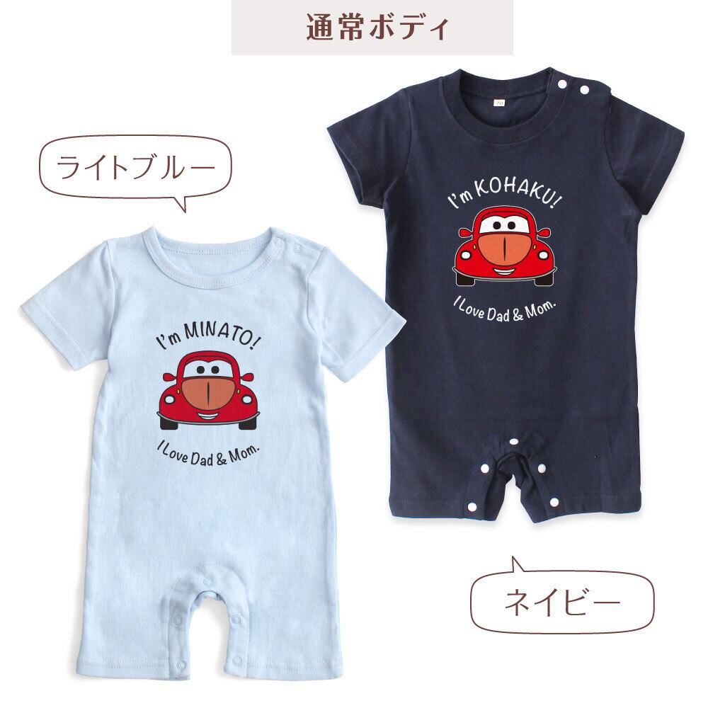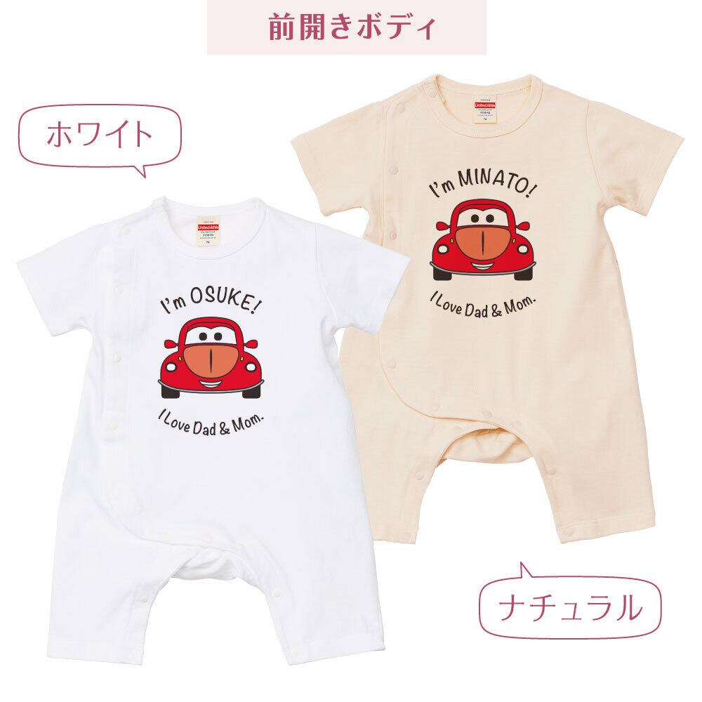 出産祝い 名入れ ロンパース くるま01 車 カー ベビー服 70cm 80cm 誕生日 お祝い プレゼント ギフト 名前入れ ハーフバースデーフォト おしゃれ かわいい お洒落 可愛い 赤ちゃん服 人気 おそろい 双子コーデ 兄弟 姉妹 男の子 女の子 記念撮影 内祝 親子コーデ | Dessert Apparel