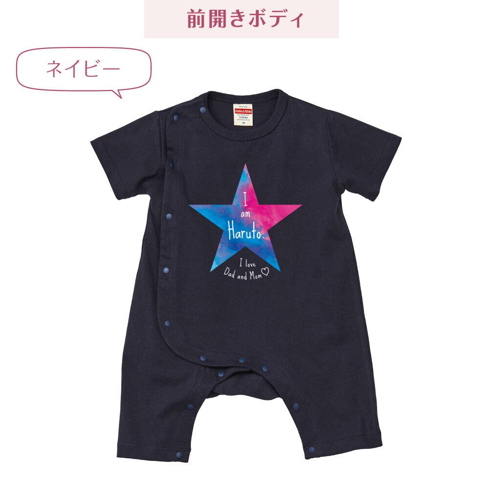 出産祝い 名入れ ロンパース 水彩風ビッグスター ベビー服 70cm 80cm 星柄 誕生日 お祝い プレゼント ギフト 名前入れ ハーフバースデーフォト おしゃれ かわいい お洒落 可愛い 赤ちゃん服 人気 おそろい 双子コーデ 兄弟 姉妹 男の子 女の子 記念撮影 内祝 親子コーデ | Dessert Apparel