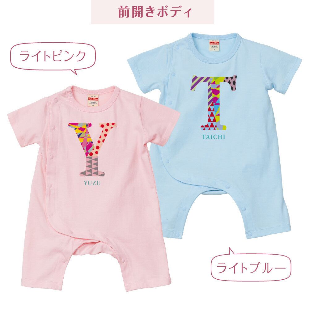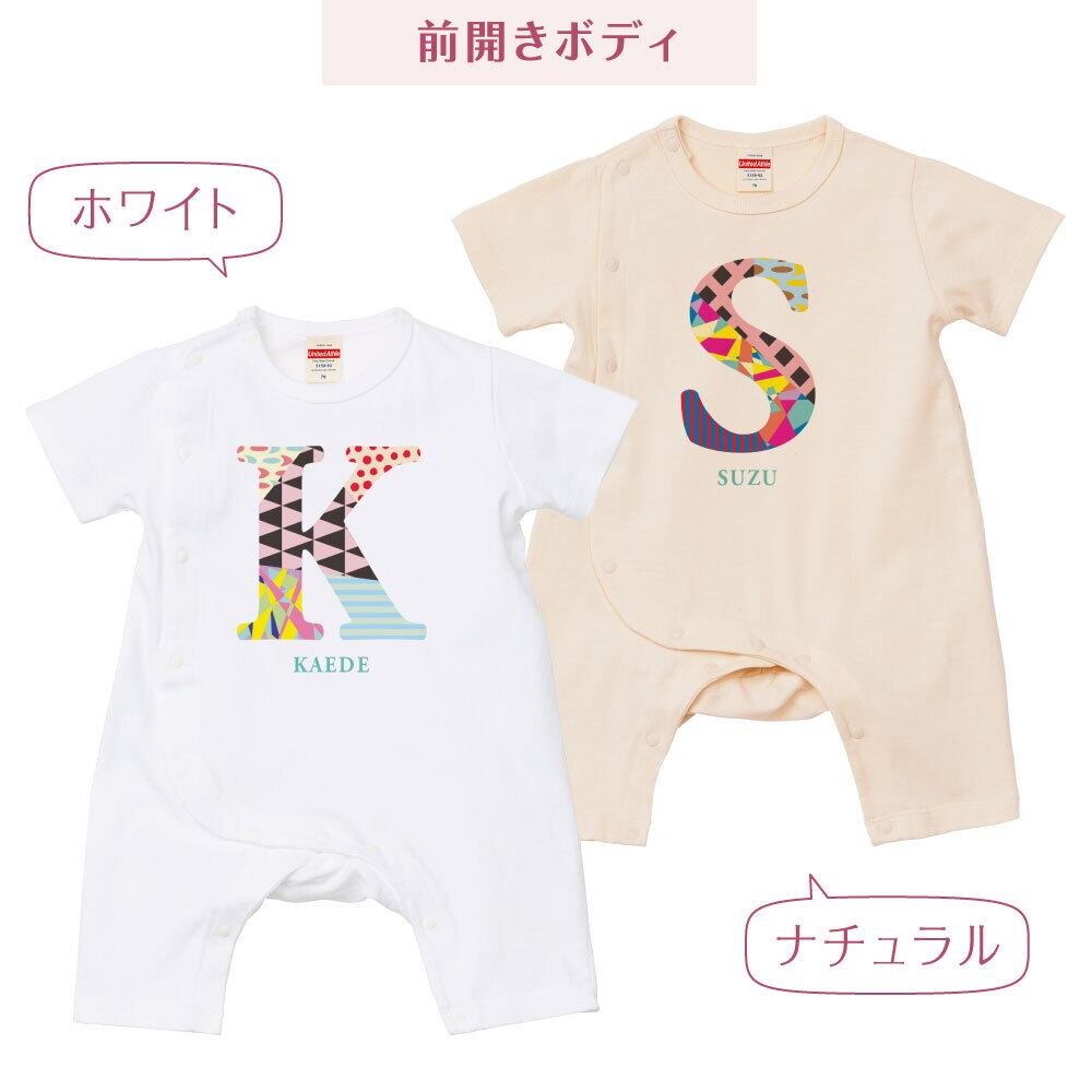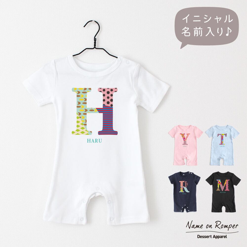 出産祝い 名入れ ロンパース イニシャル カラー ベビー服 70cm 80cm 誕生日 お祝い プレゼント ギフト 名前入れ ハーフバースデーフォト おしゃれ かわいい お洒落 可愛い 赤ちゃん服 人気 おそろい 双子コーデ 兄弟 姉妹 男の子 女の子 記念撮影 内祝 親子コーデ | Dessert Apparel